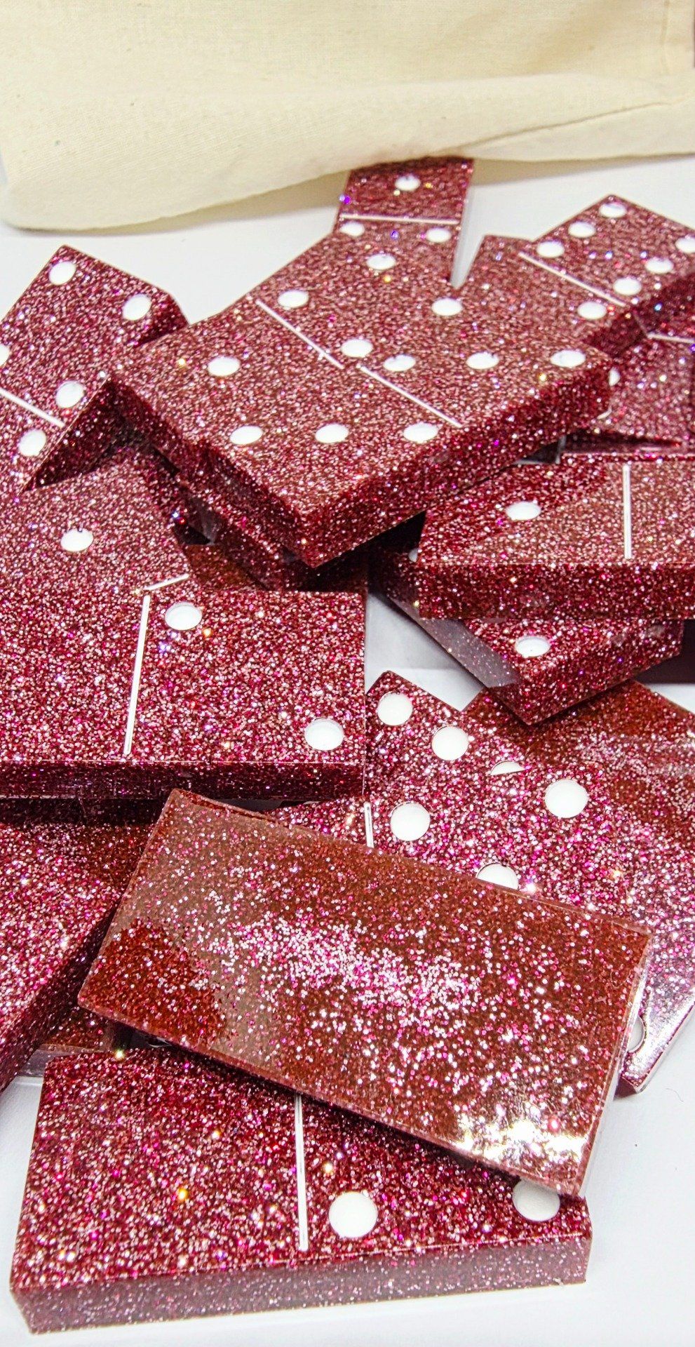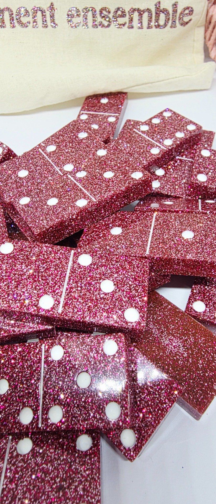 Découvrez un jeu de dominos d’exception, pensé comme un véritable objet décoratif autant qu’un jeu de société intemporel. Chaque domino est réalisé à la main en résine époxy translucide, laissant apparaître de sublimes incrustations de paillettes rose qui captent la lumière et offrent de magnifiques reflets scintillants. Cette création unique allie élégance, originalité et savoir-faire artisanal.