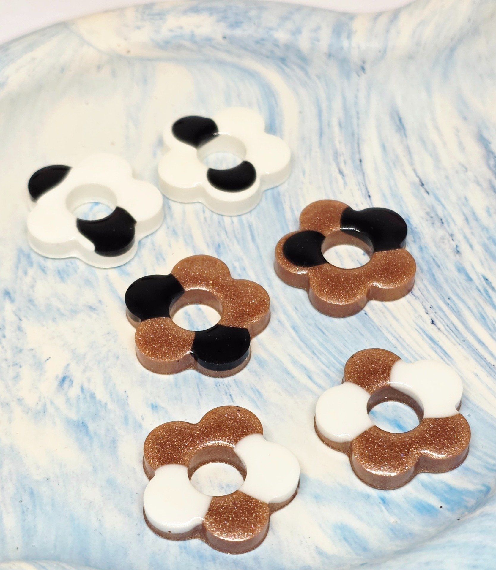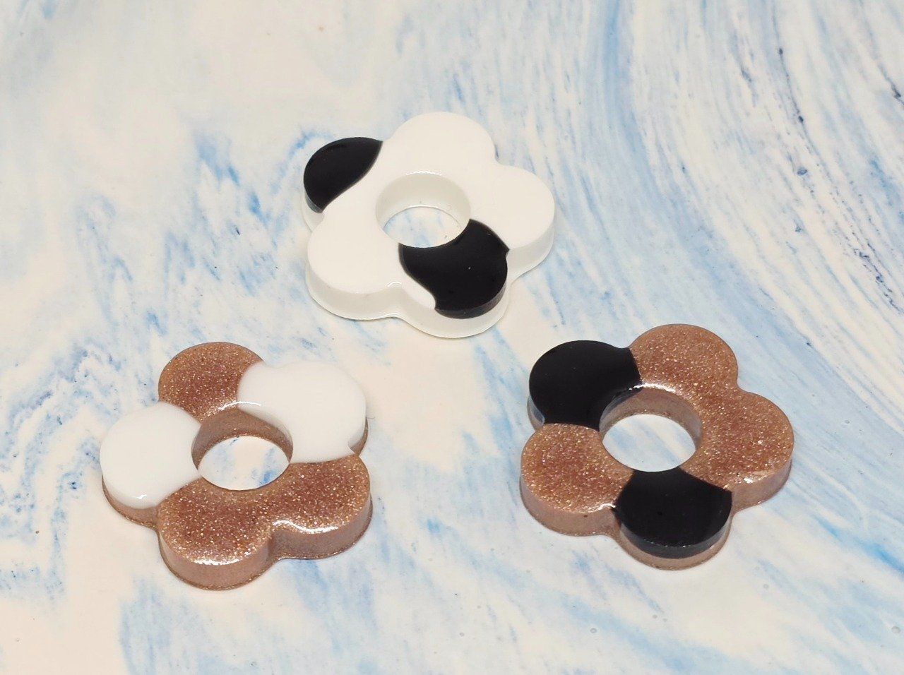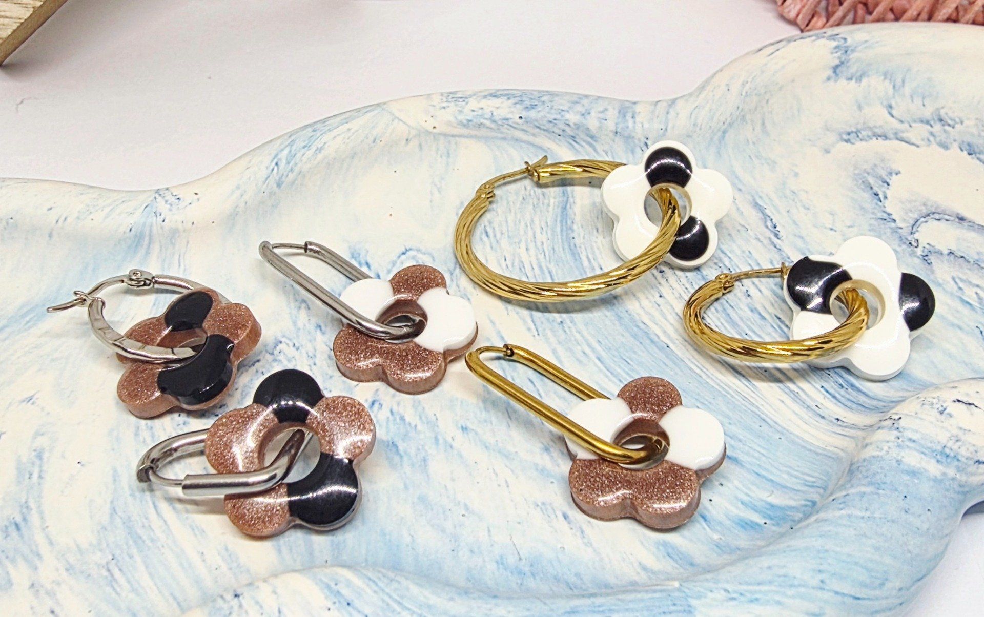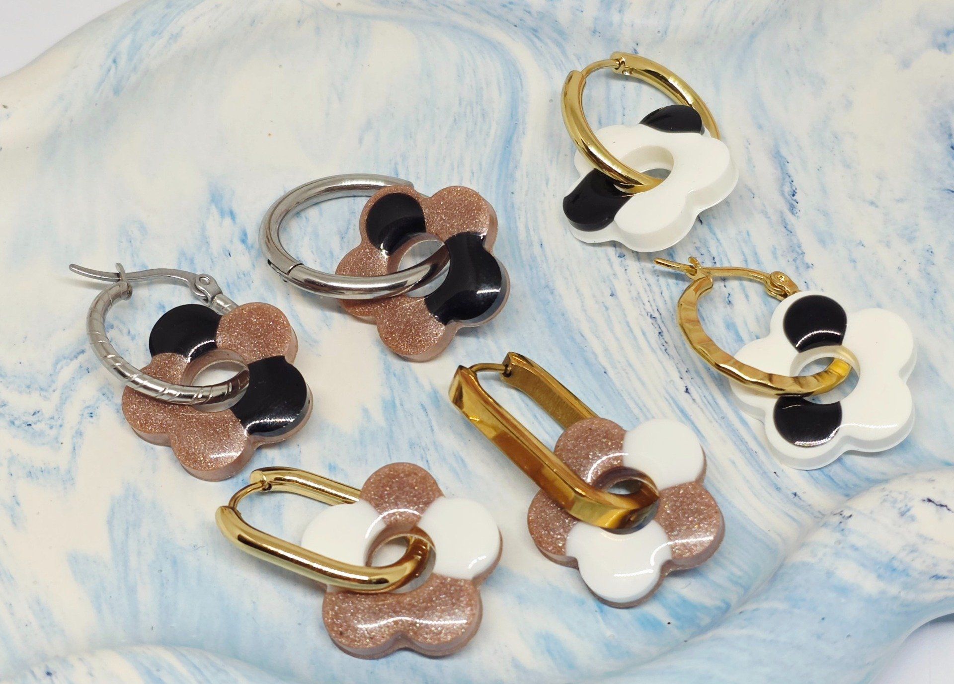 Apportez une touche d’élégance et d’originalité à vos bijoux avec ce lot de 2 pampilles en forme de fleurs en résine époxy, entièrement réalisées à la main. Ces pampilles uniques sont conçues pour s’adapter facilement à toutes vos créoles disponibles sur notre boutique, vous permettant de personnaliser vos boucles d’oreilles selon vos envies et votre style du moment.