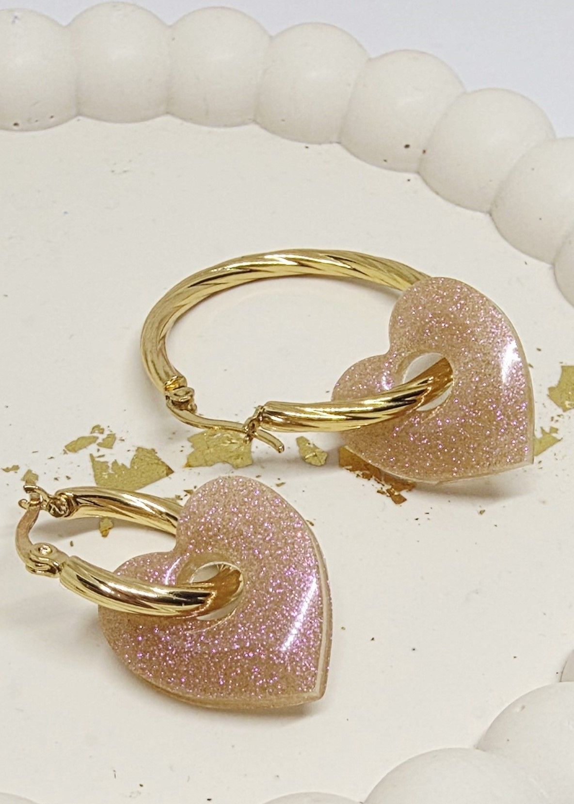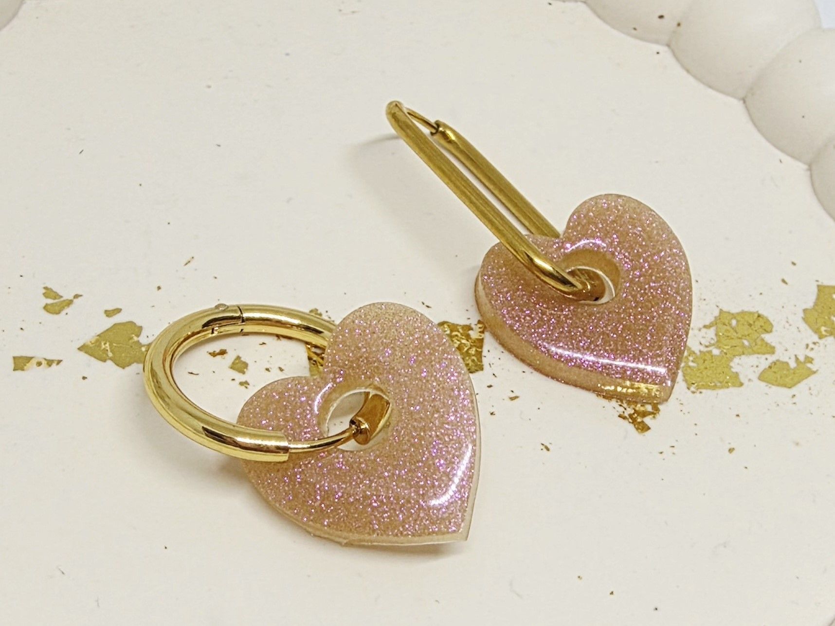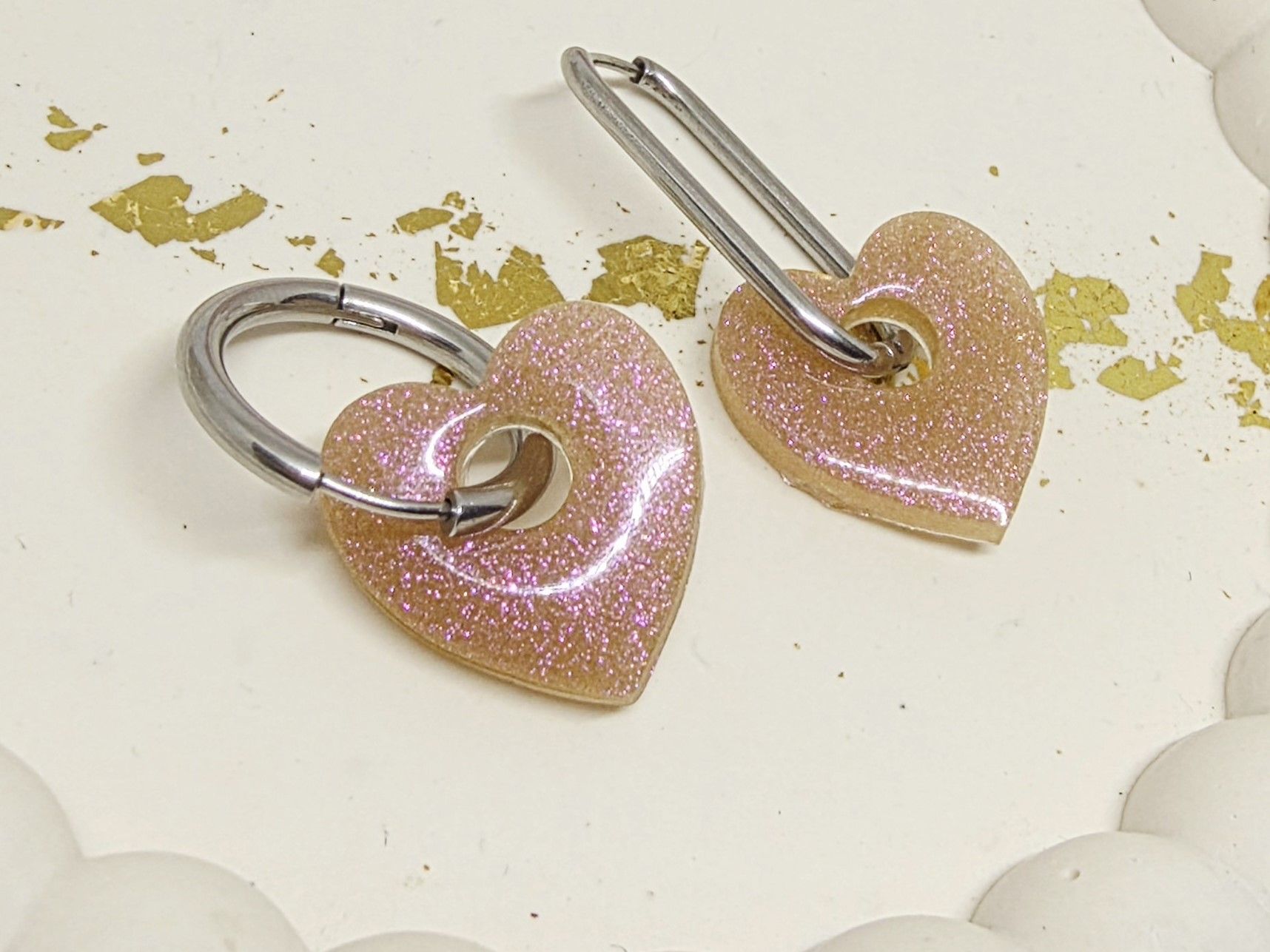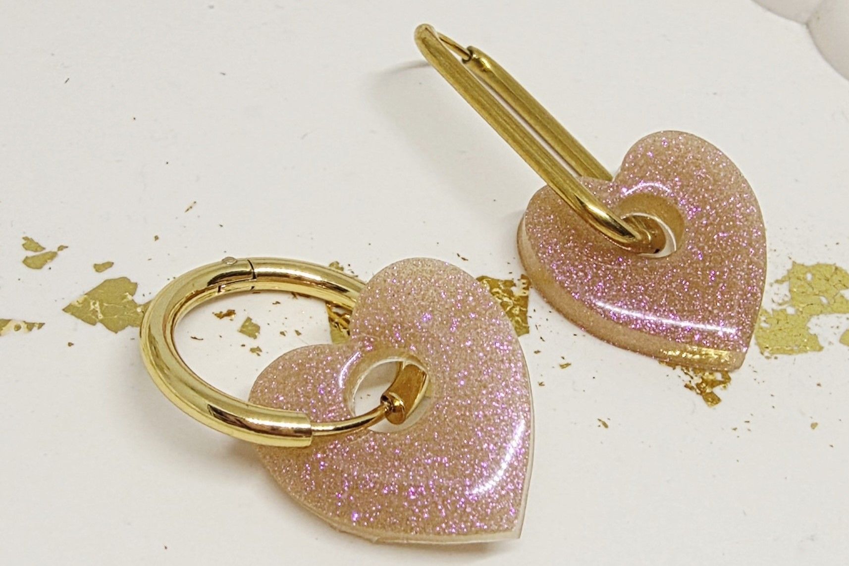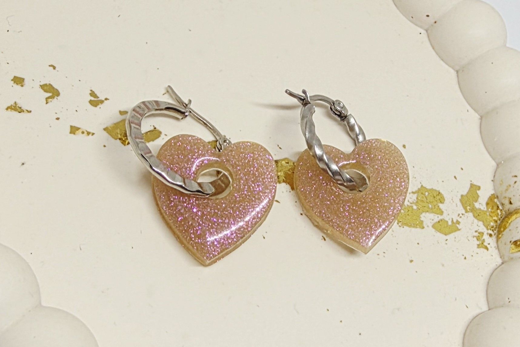 Lot de 2 créoles en acier inoxydable dorée ou argentée forme de cœur. Compatibles avec les pampilles du site lesrésinespassions.com sauf avec les modèles Aria et Athéna.