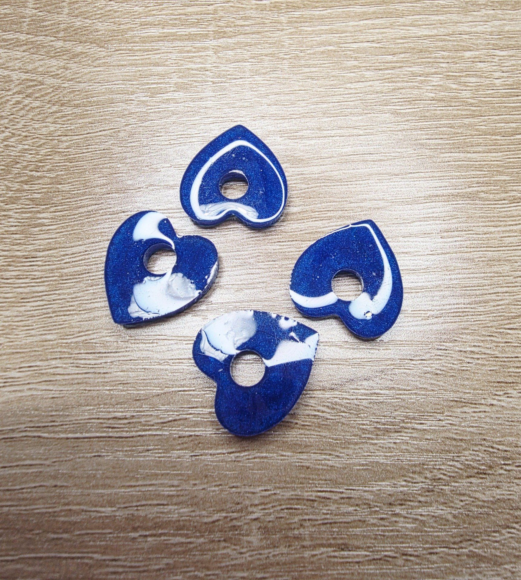 Lot de 2 Pampilles cœur en résine époxy bleues. Vendues sans les créoles (différents modèles qui peuvent être commandées séparément sur le site lesresinespassions.com).