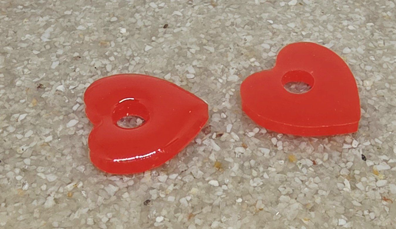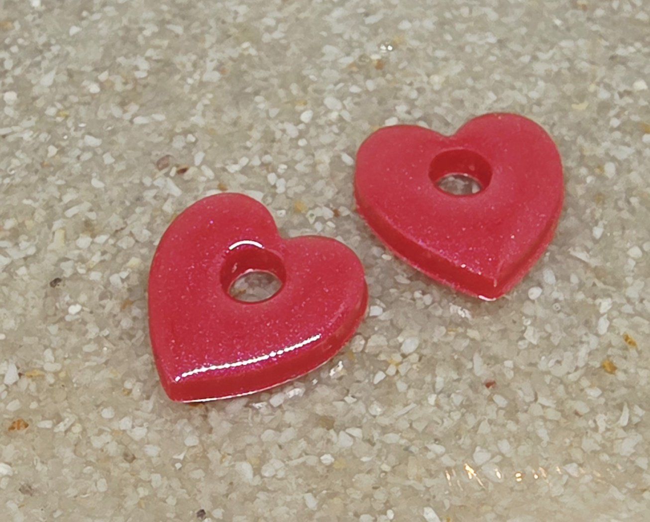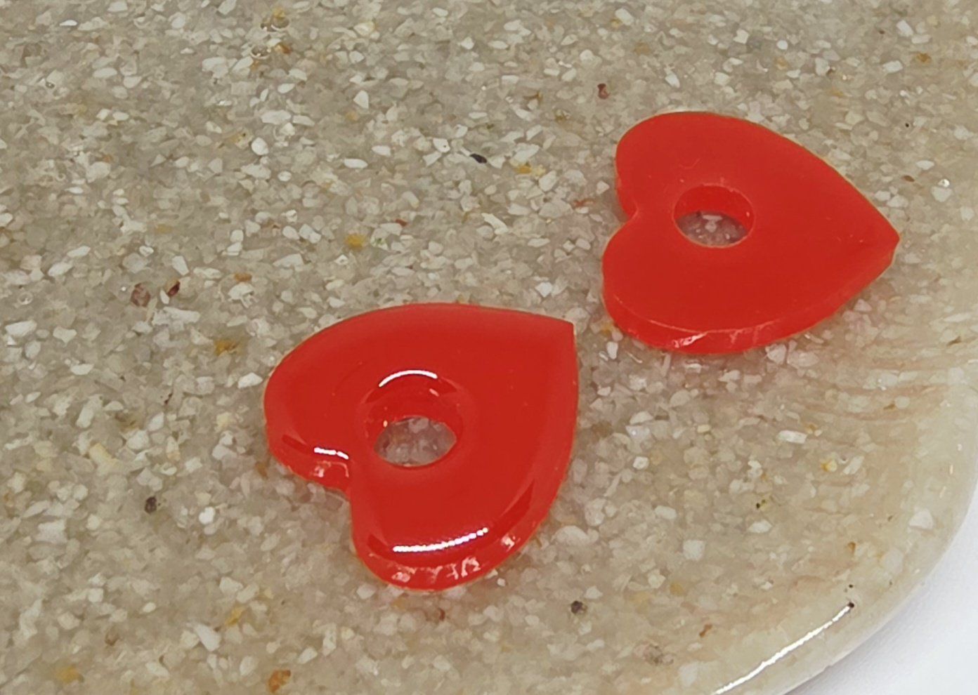 Lot de 2 Pampilles cœur en résine époxy rouge (Différentes nuances disponibles). Vendues sans les les créoles (différents modèles possibles) qui peuvent être commandées séparément sur le site lesresinespassions.com.
