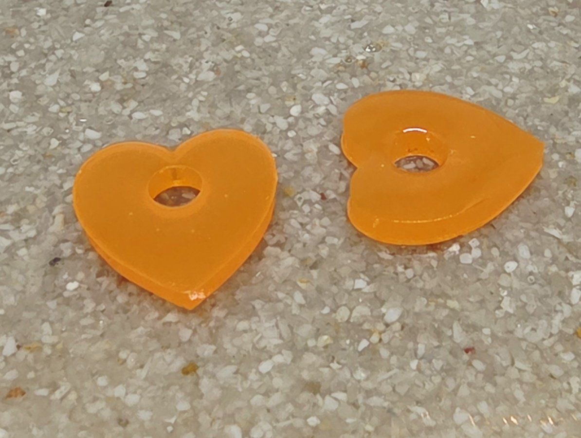 Lot de 2 Pampilles cœur en résine époxy orange.