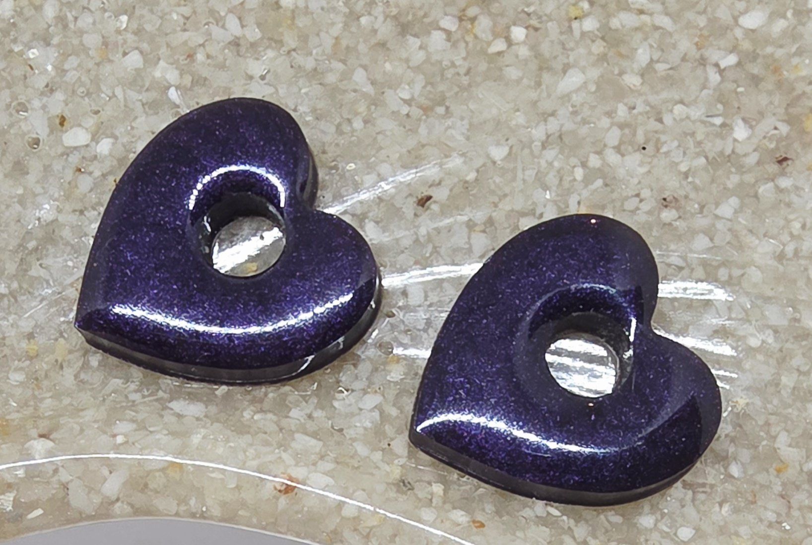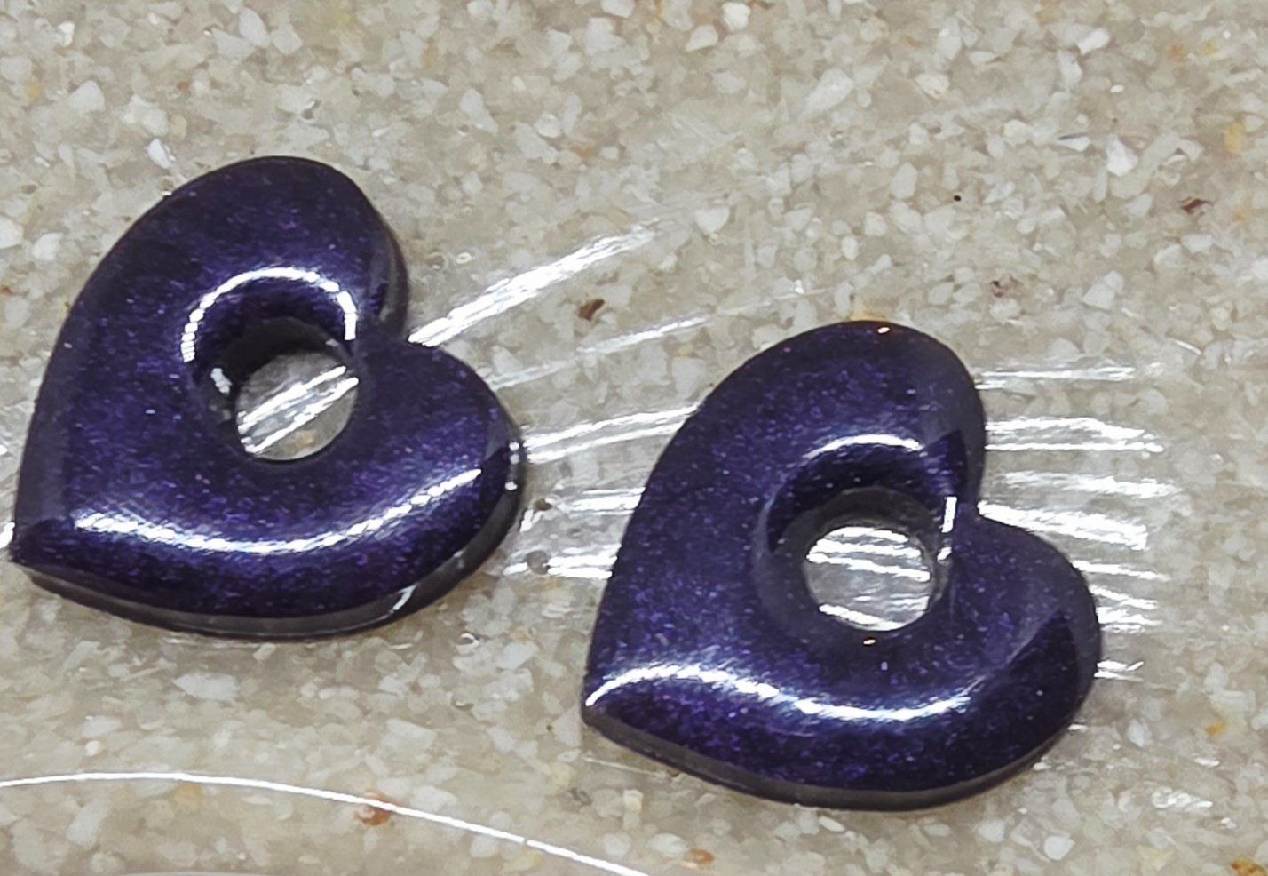 Lot de 2 Pampilles cœur en résine époxy violette foncée. Vendues sans les les créoles (différents modèles possibles) qui peuvent être commandées séparément sur le site lesresinespassions.com.
