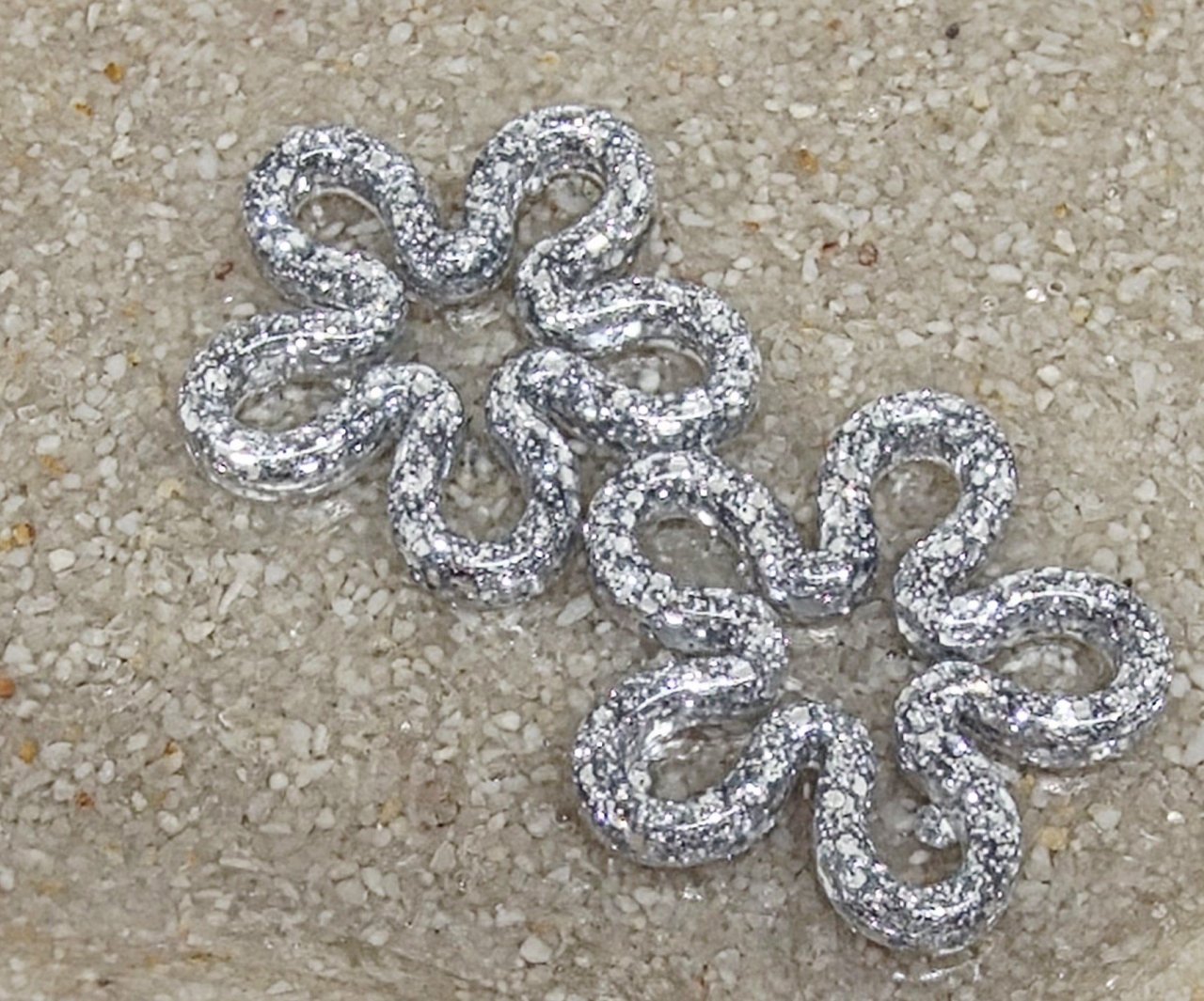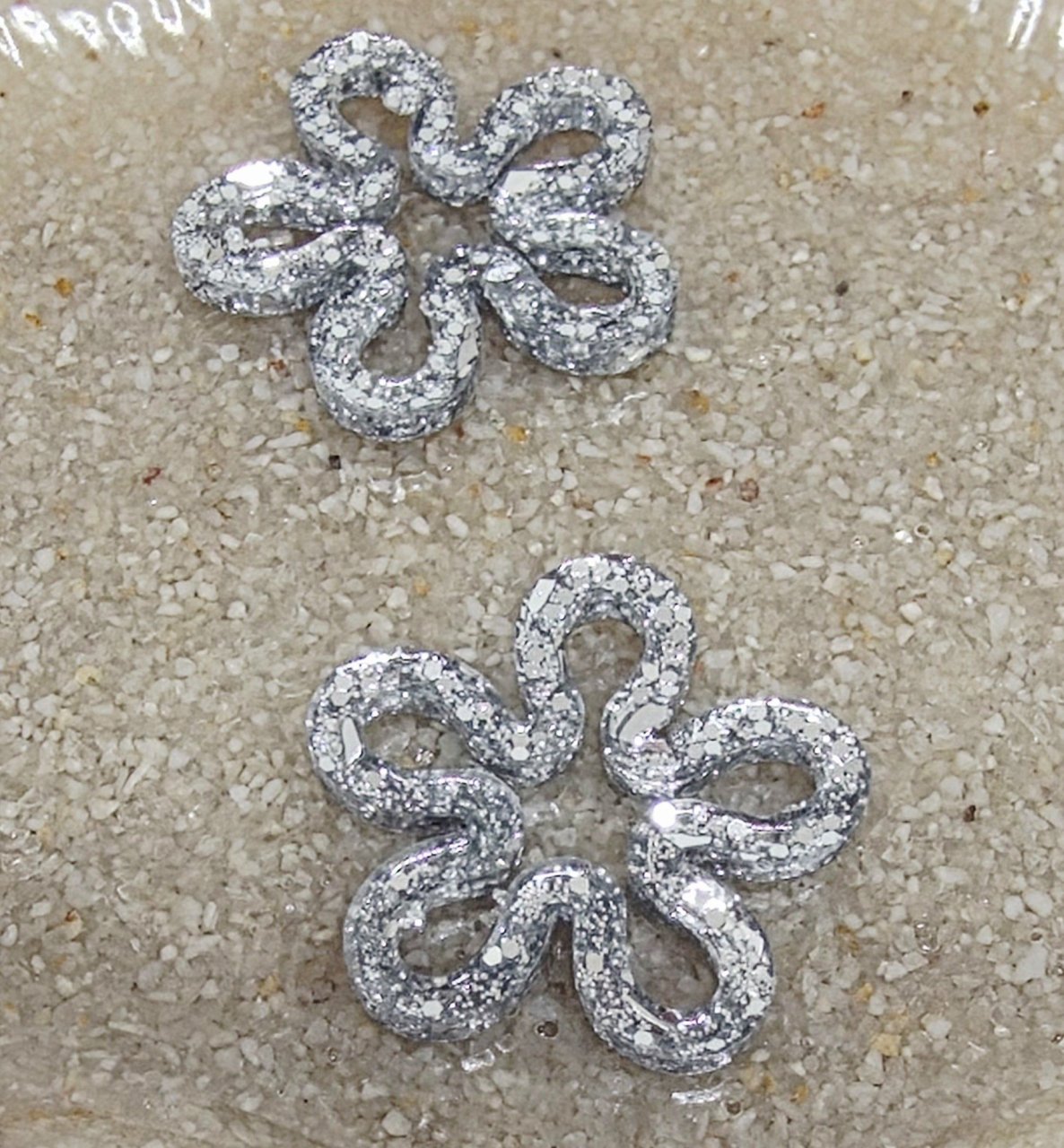 Lot de 2 Pampilles, Diana, en résine époxy avec des incrustations de paillettes argentées, compatibles avec tous les modèles de créoles.