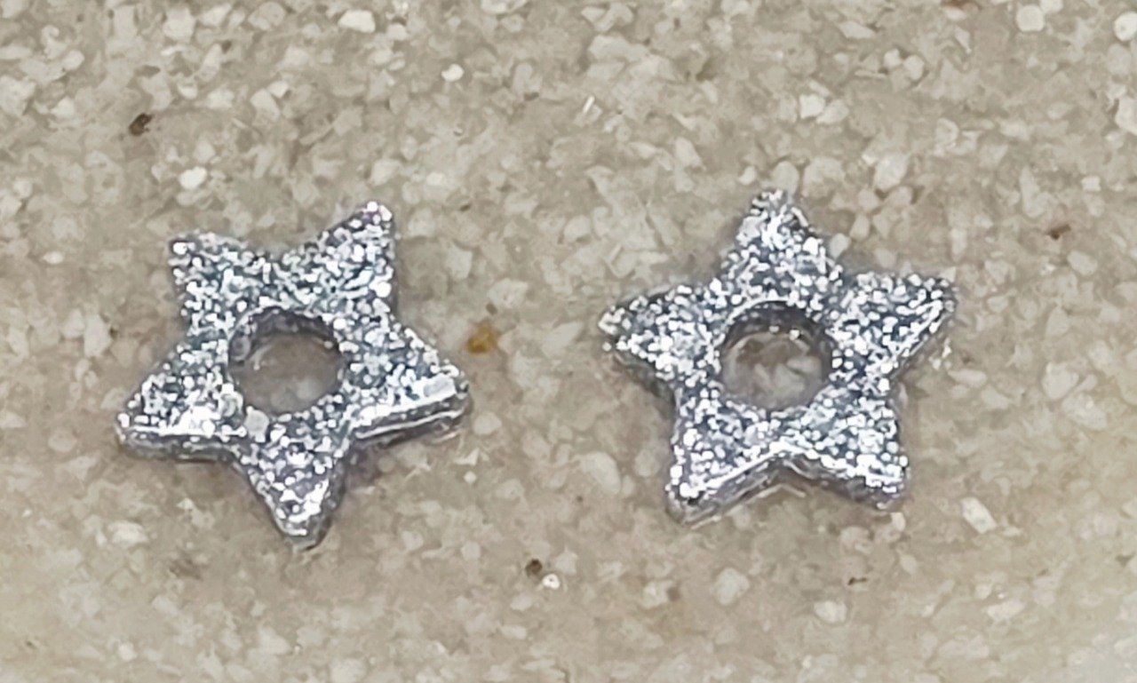 Lot de 2 pampilles étoile en résine époxy avec des incrustations de paillettes argentées. Vendues sans les créoles.