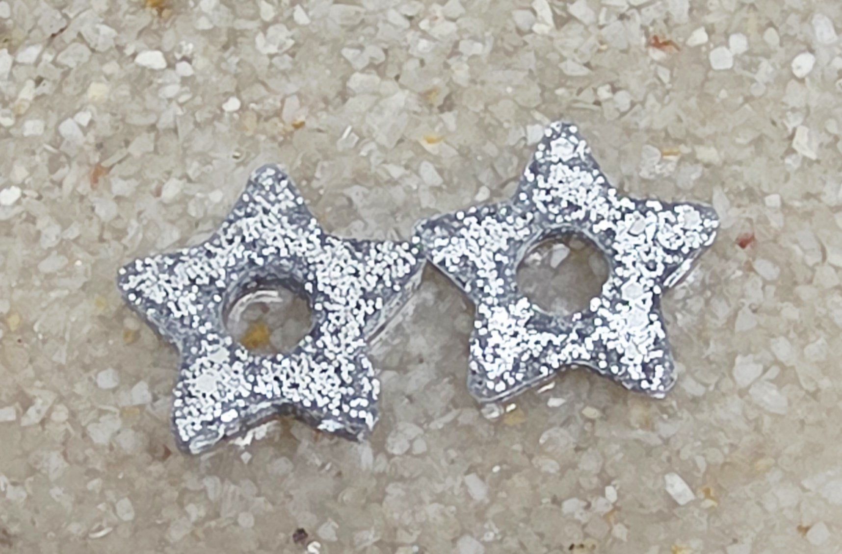 Lot de 2 pampilles étoile en résine époxy – Incrustations de paillettes argentées ✨