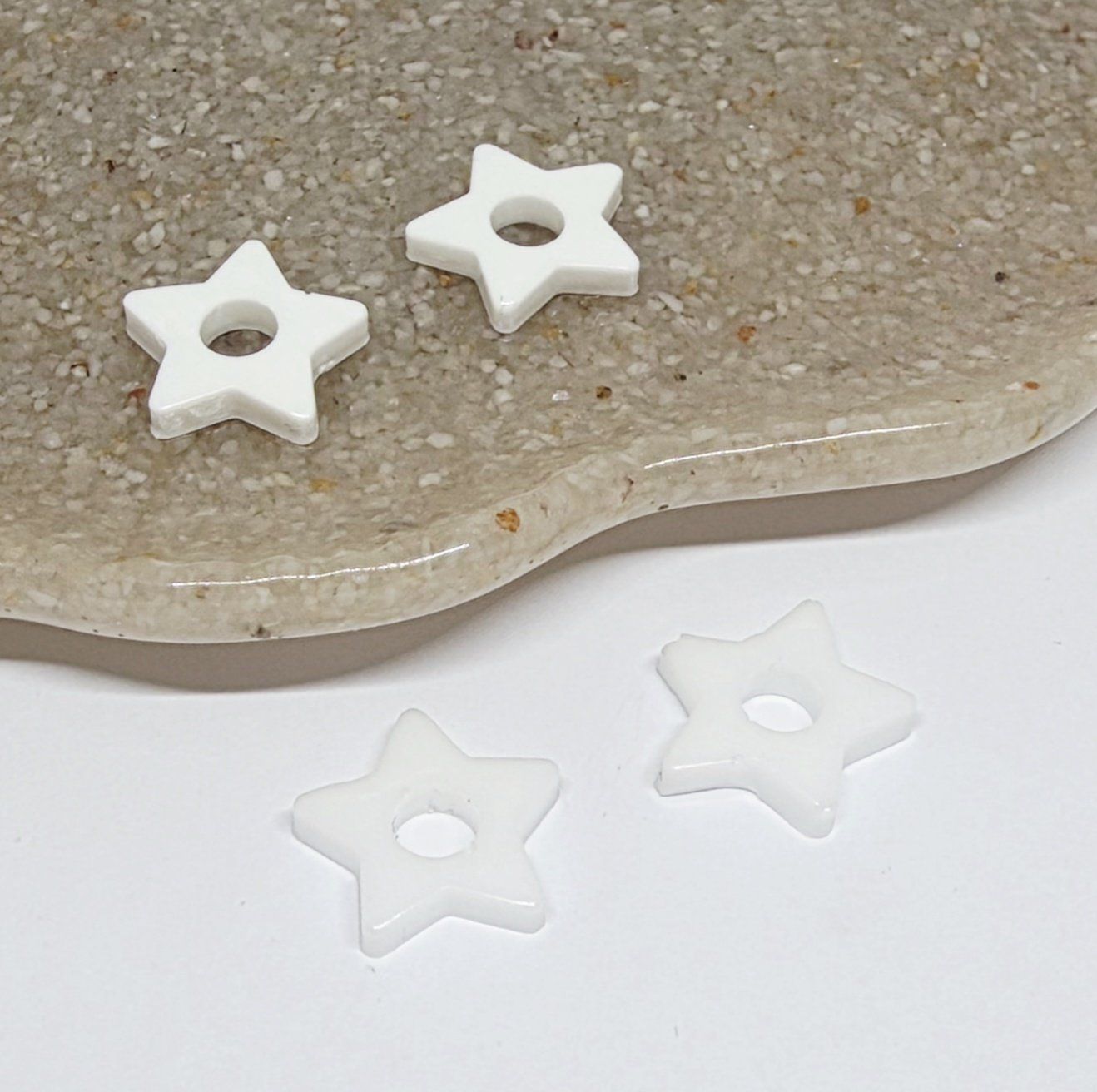 Lot de 2 pampilles étoile en résine époxy blanche. Vendues sans les créoles.