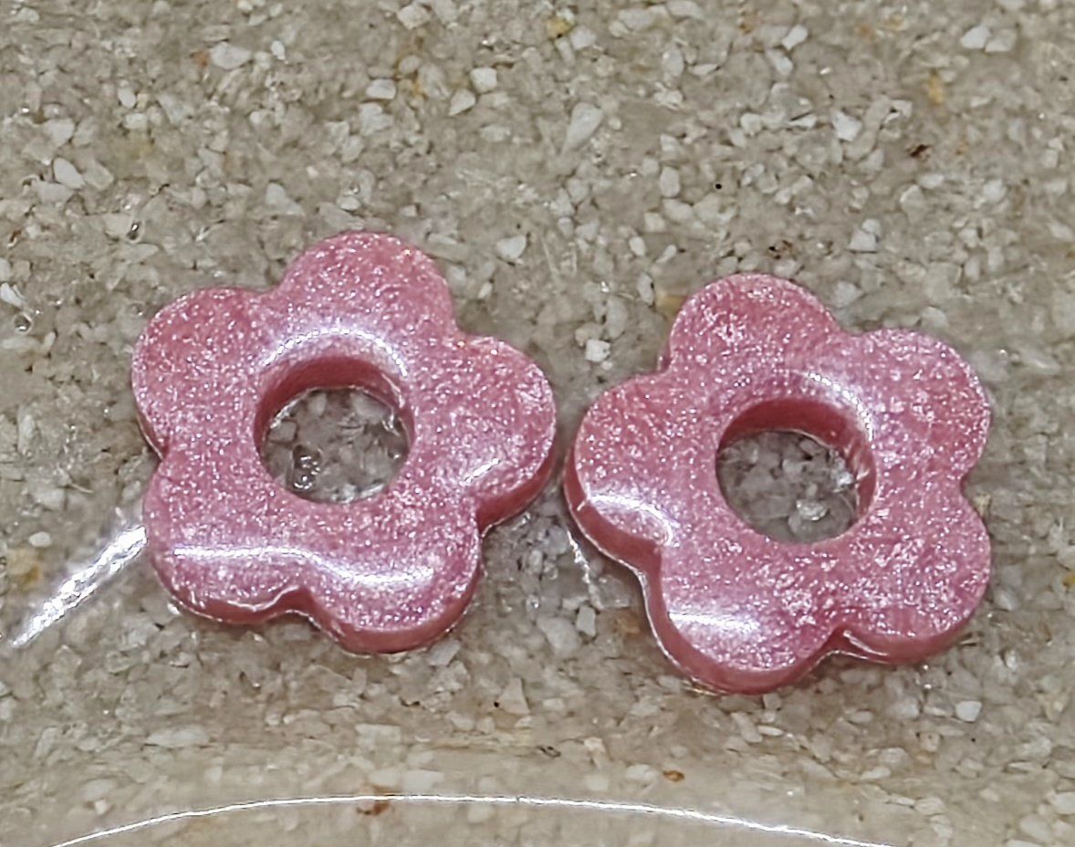 Lot de 2 Pampilles en forme de fleurs en résine époxy rose. Vendues sans les créoles (tous les modèles de créoles sur le site lesresinespassions.com sont compatibles).