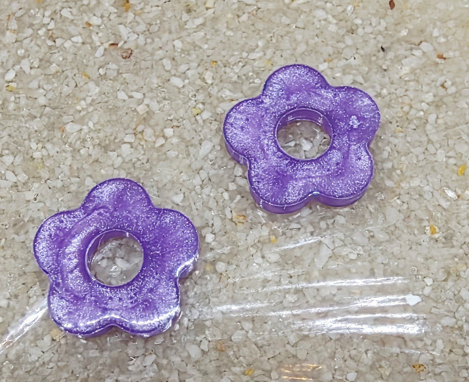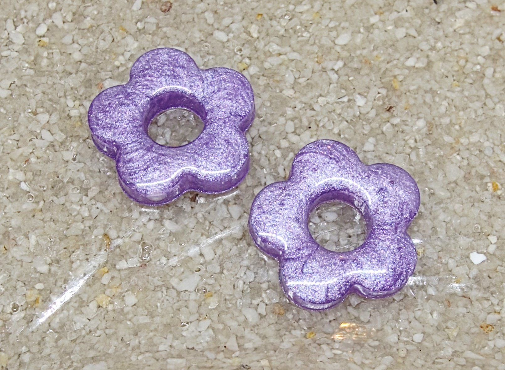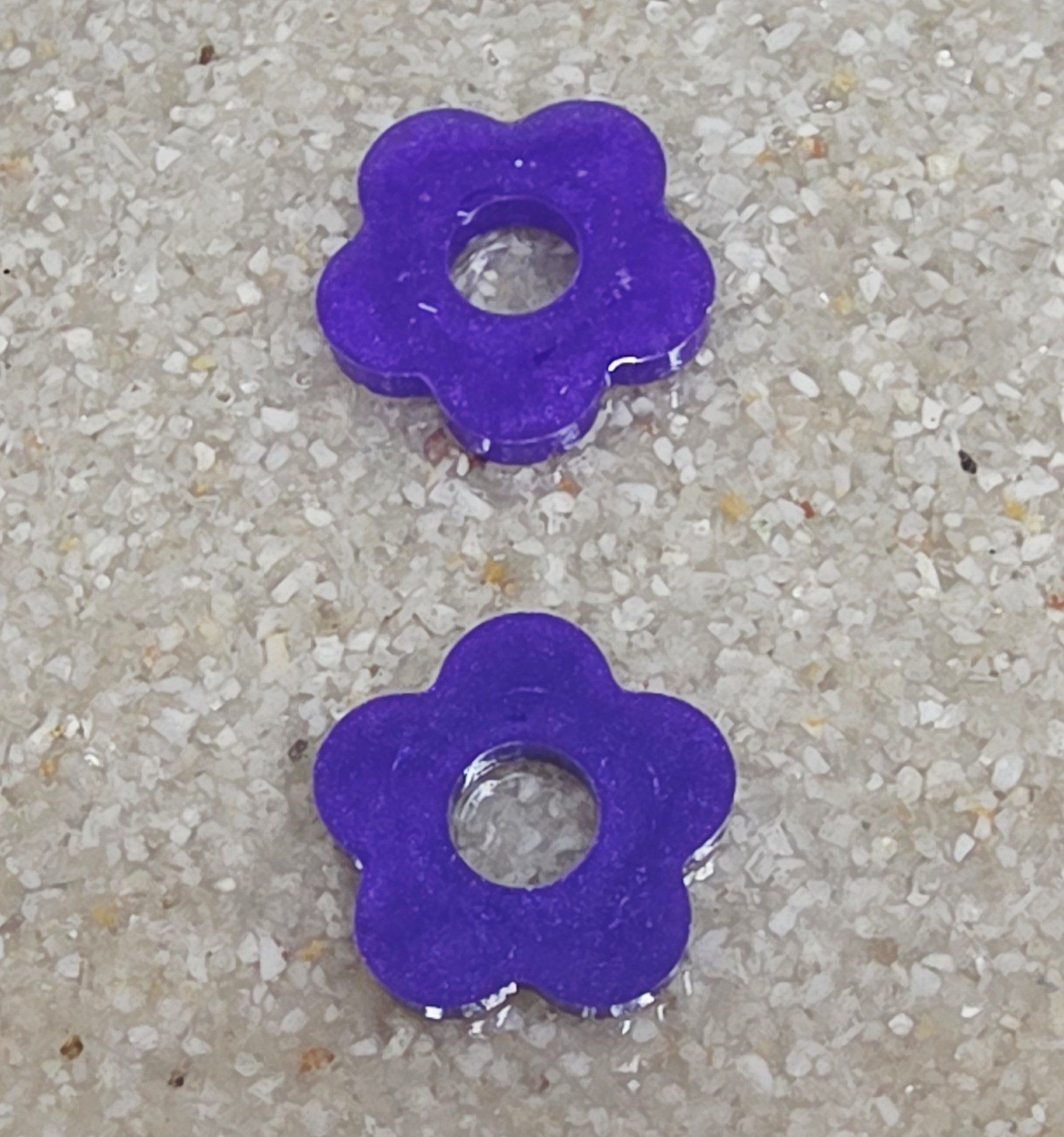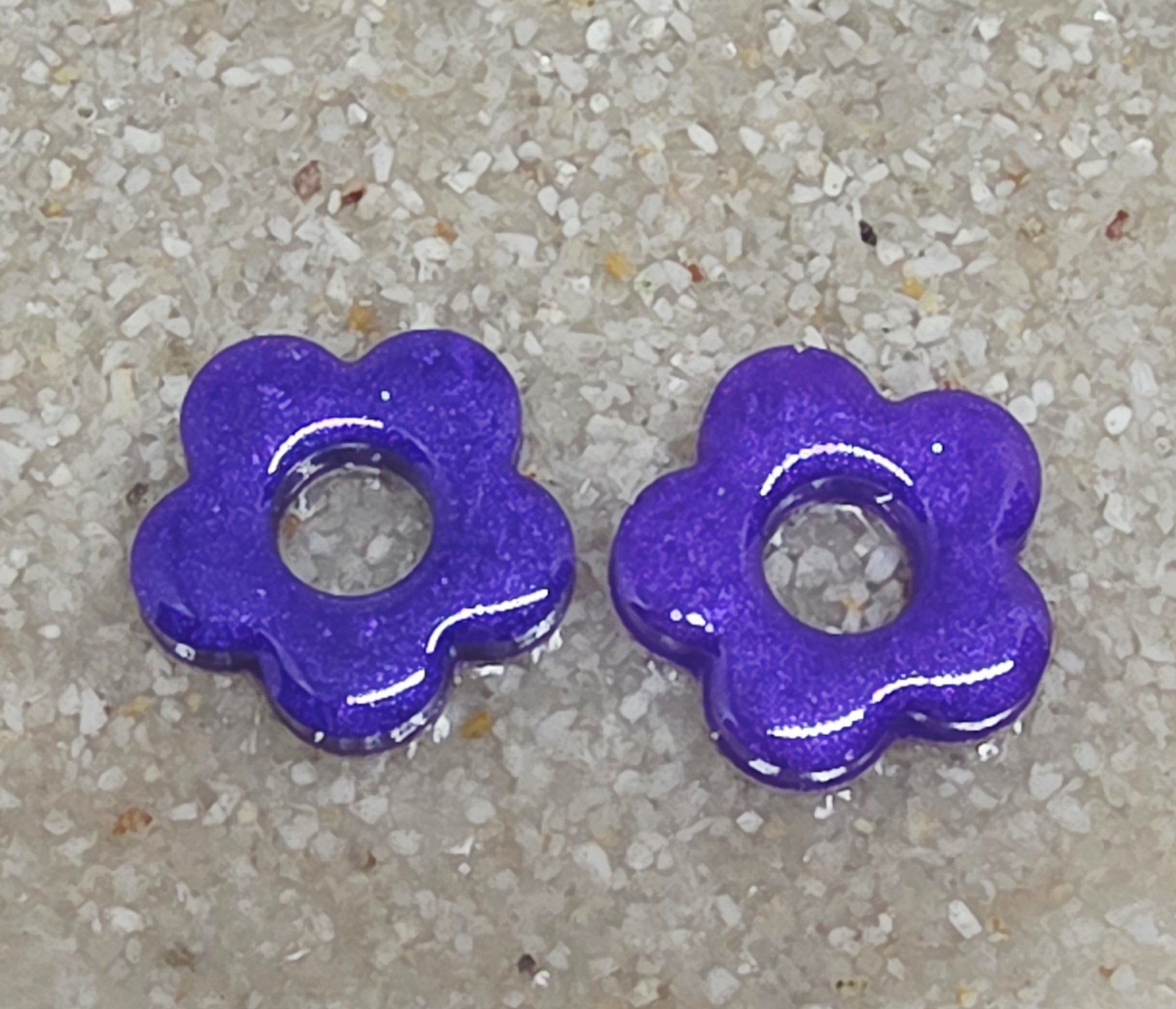 Lot de 2 Pampilles en forme de fleurs en résine époxy violette (différentes nuances disponibles).