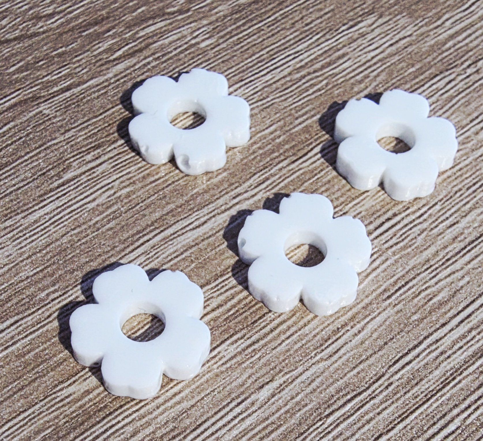Lot de 2 Pampilles en forme de fleurs, 5 pétales, en résine époxy blanche opaque. Vendues en lot de 2. Vendues sans les créoles.