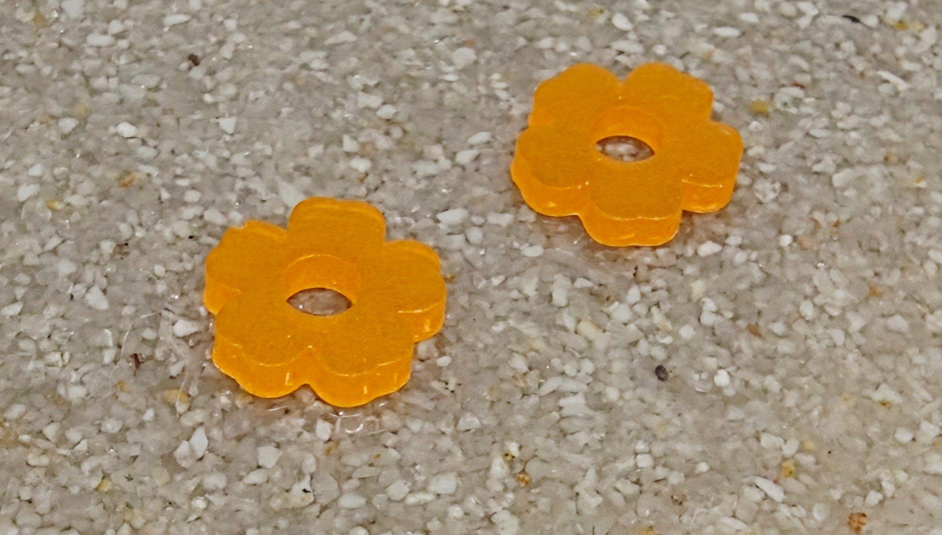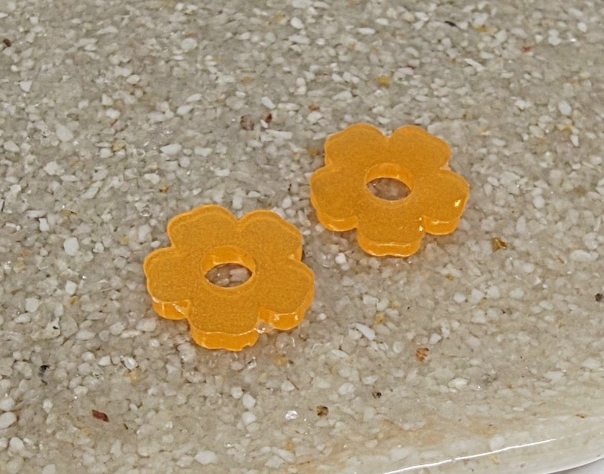 Lot de 2 Pampilles en forme de fleurs, 5 pétales, en résine époxy orange translucide. Vendues en lot de 2. Vendues sans les créoles.