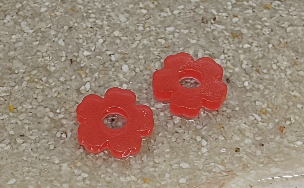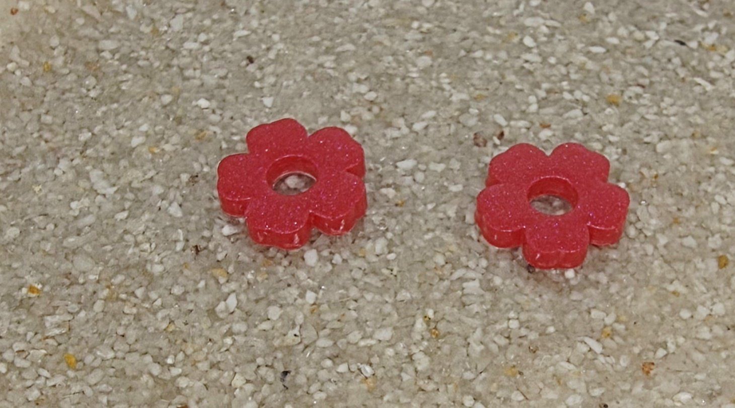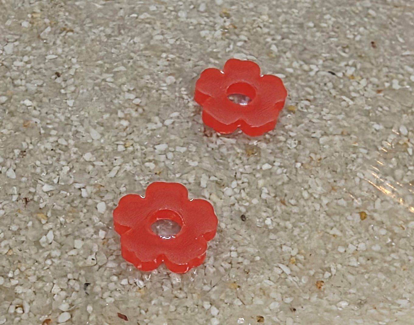 Lot de 2 Pampilles en forme de fleurs, 5 pétales, en résine époxy rouge translucide. Vendues en lot de 2. Vendues sans les créoles.