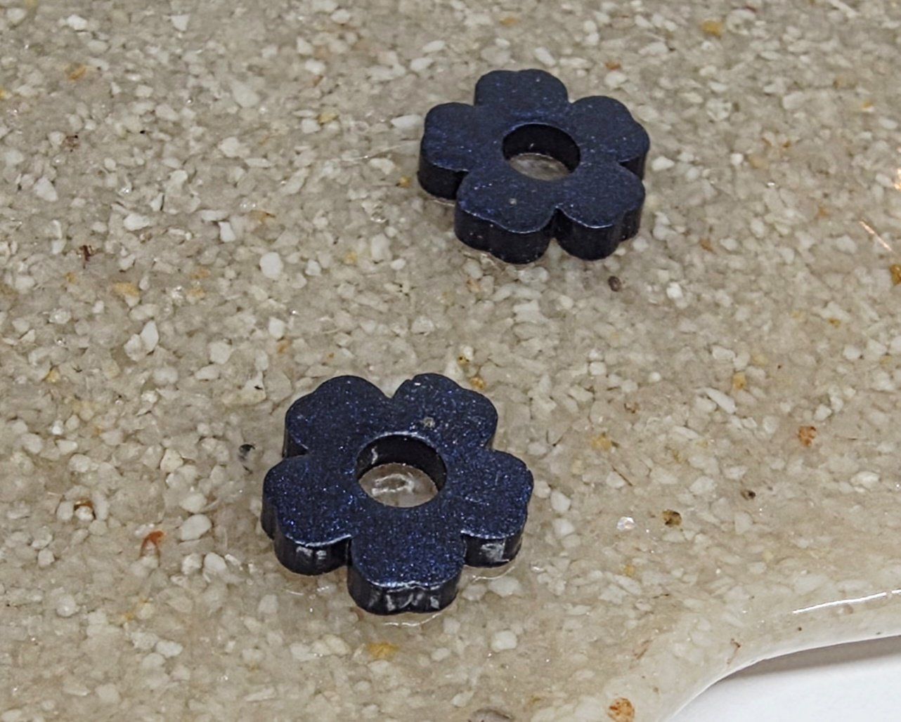 Lot de 2 Pampilles en forme de fleurs, 5 pétales, en résine époxy bleue foncée opaque. Vendues en lot de 2. Vendues sans les créoles.