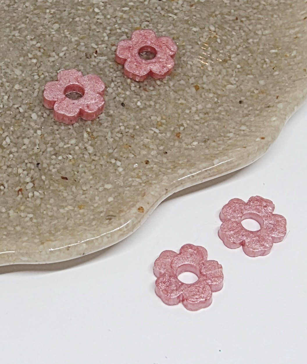 Lot de 2 Pampilles en forme de fleurs, 5 pétales, en résine époxy rose. Vendues en lot de 2. Vendues sans les créoles.
