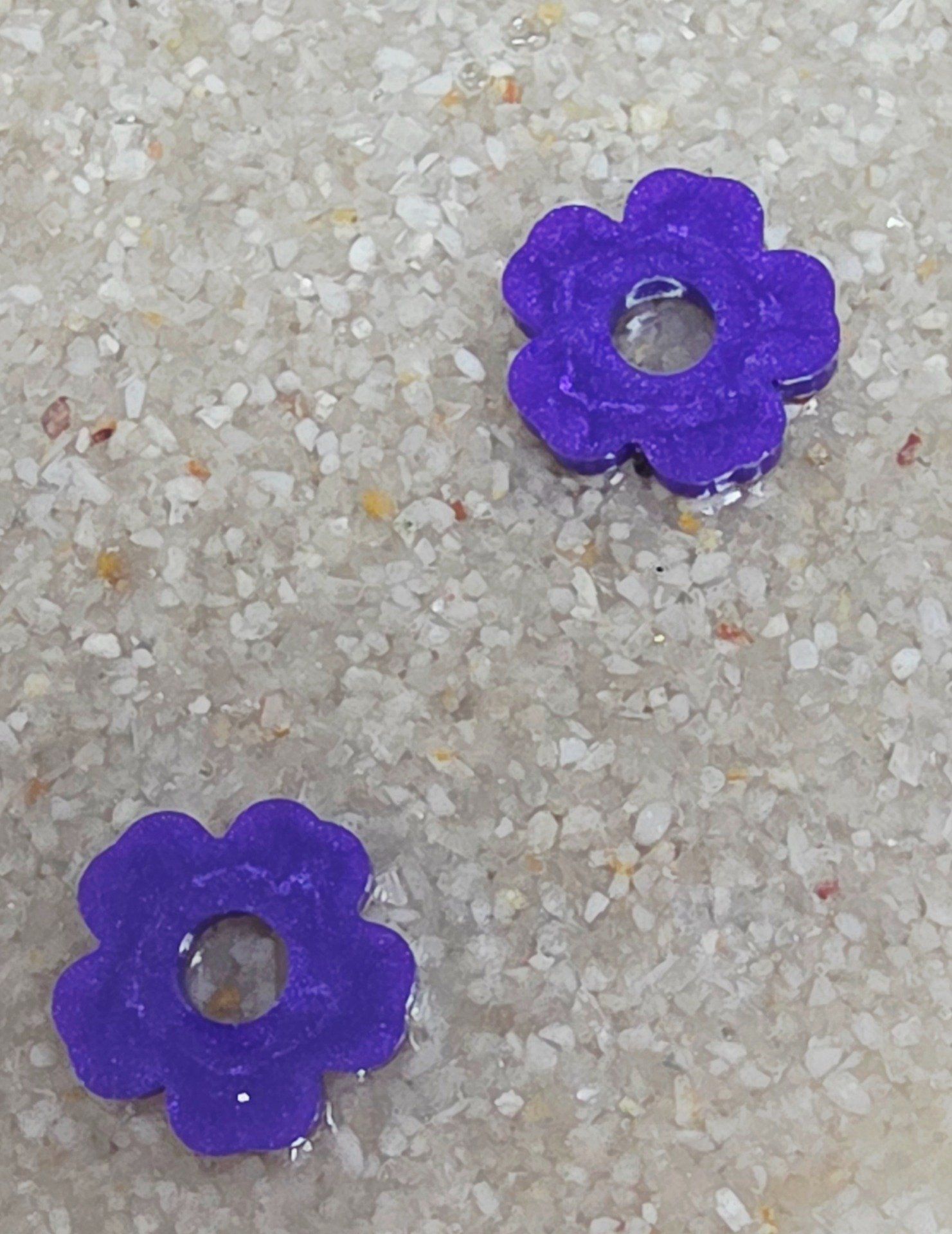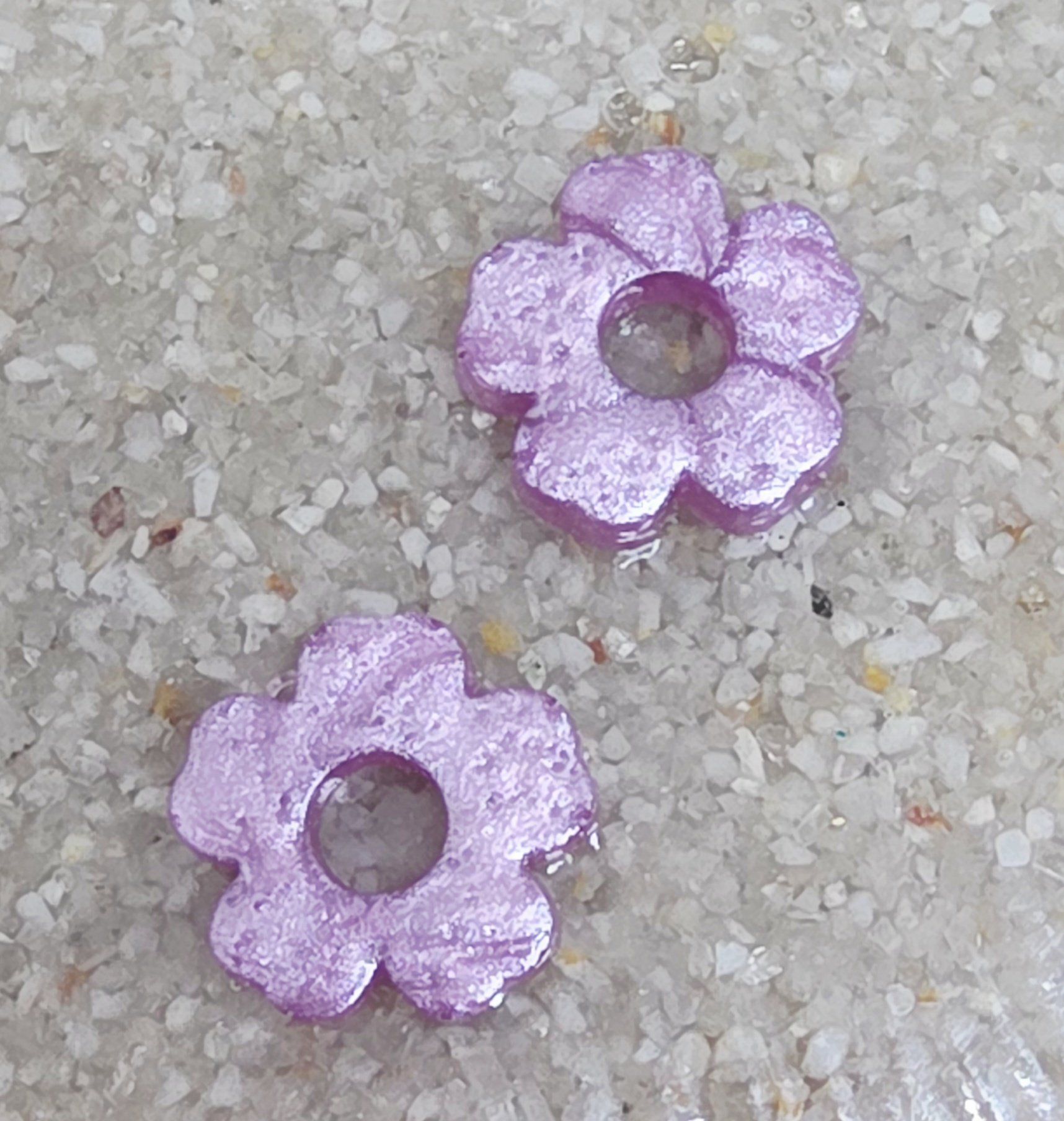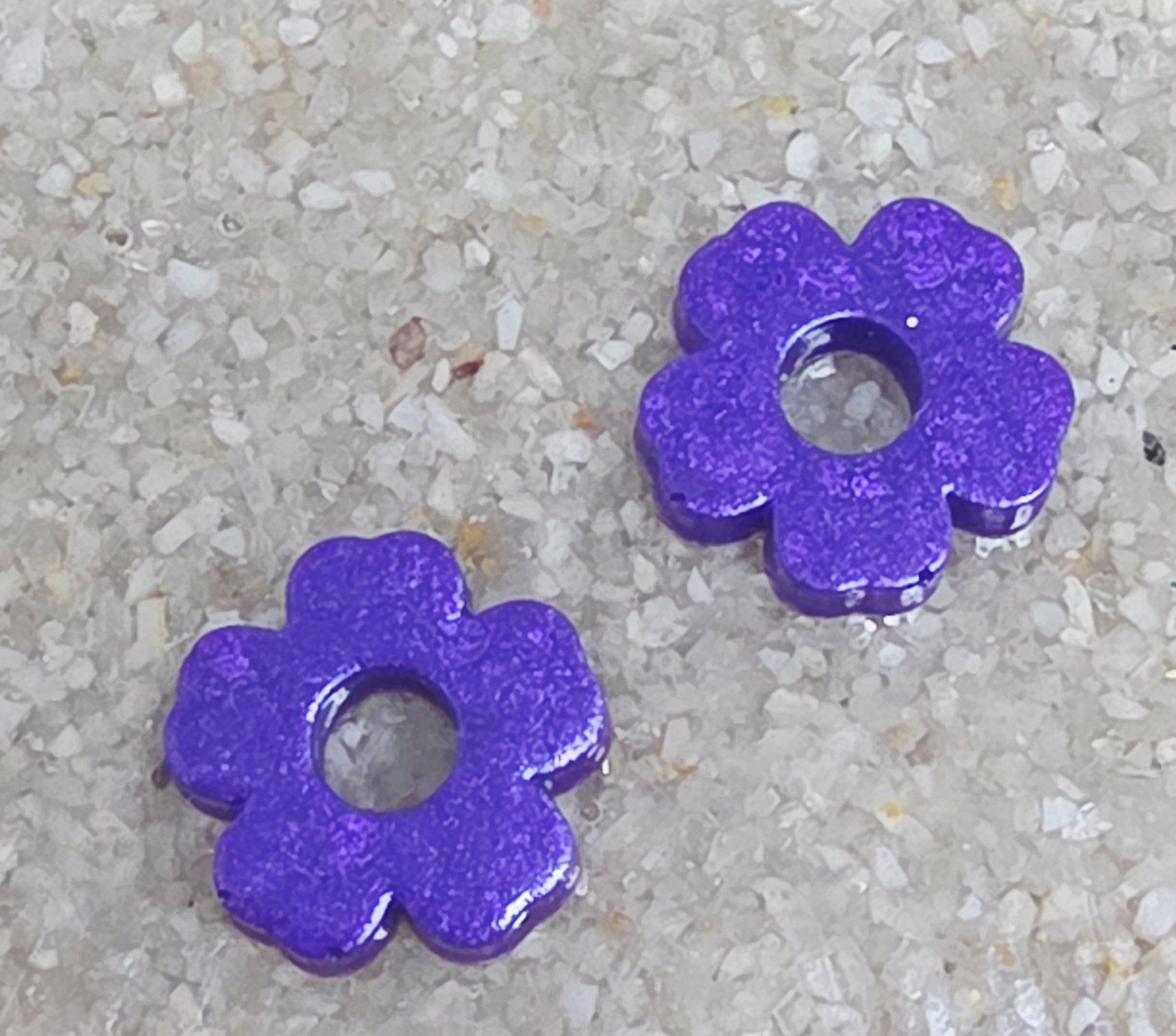 Lot de 2 Pampilles en forme de fleurs, 5 pétales, en résine époxy violette opaque (différentes nuances disponibles). Vendues en lot de 2. Vendues sans les créoles.