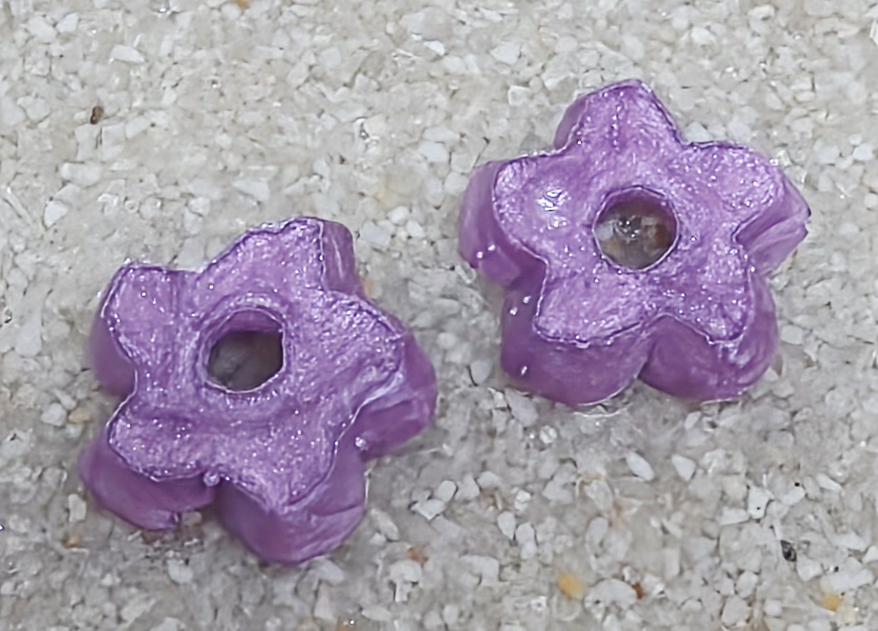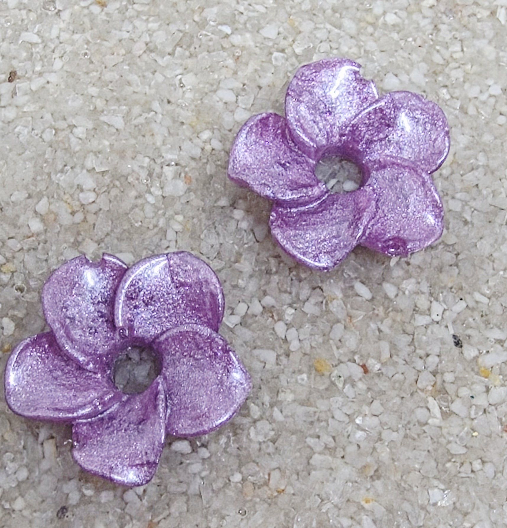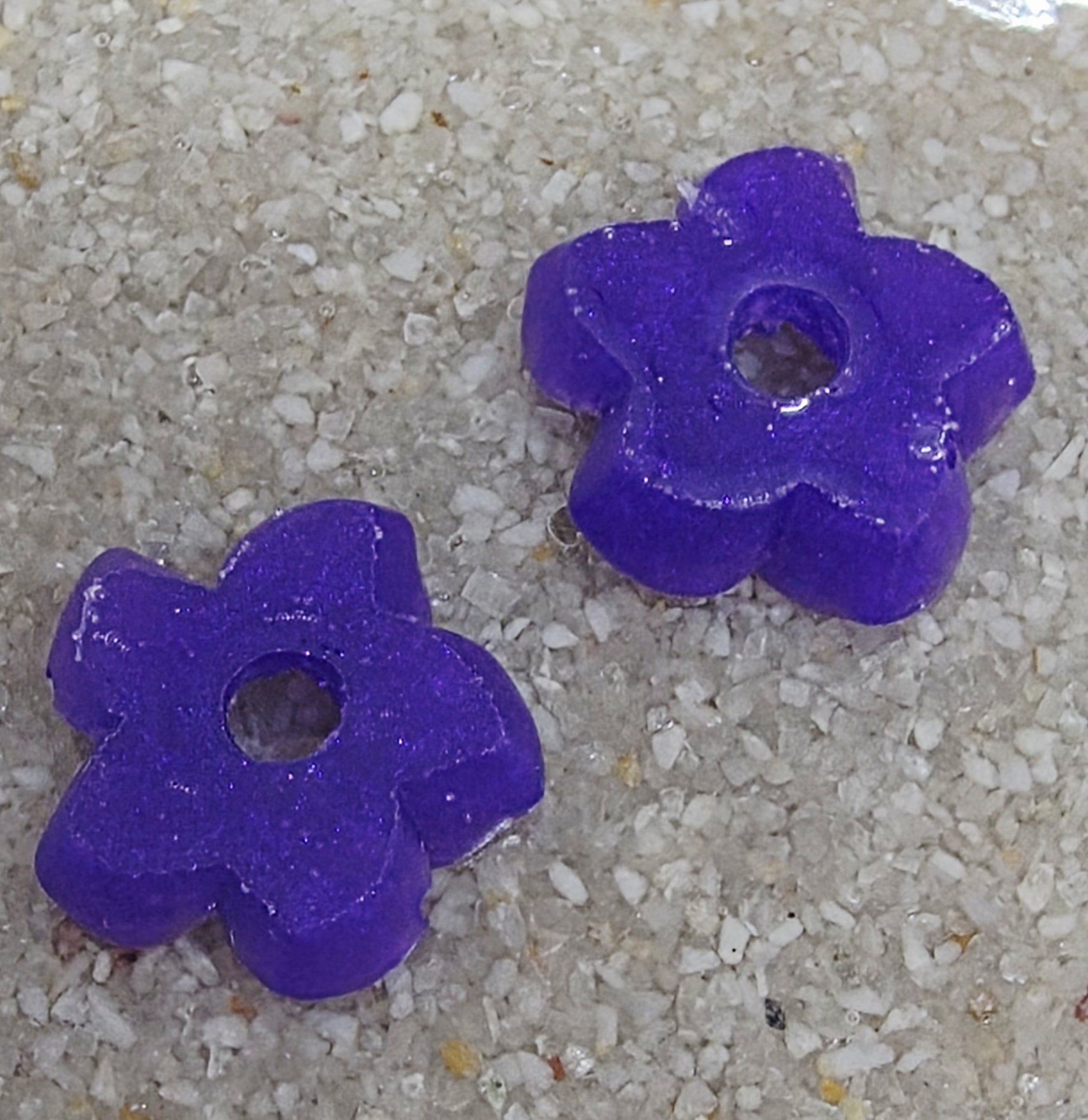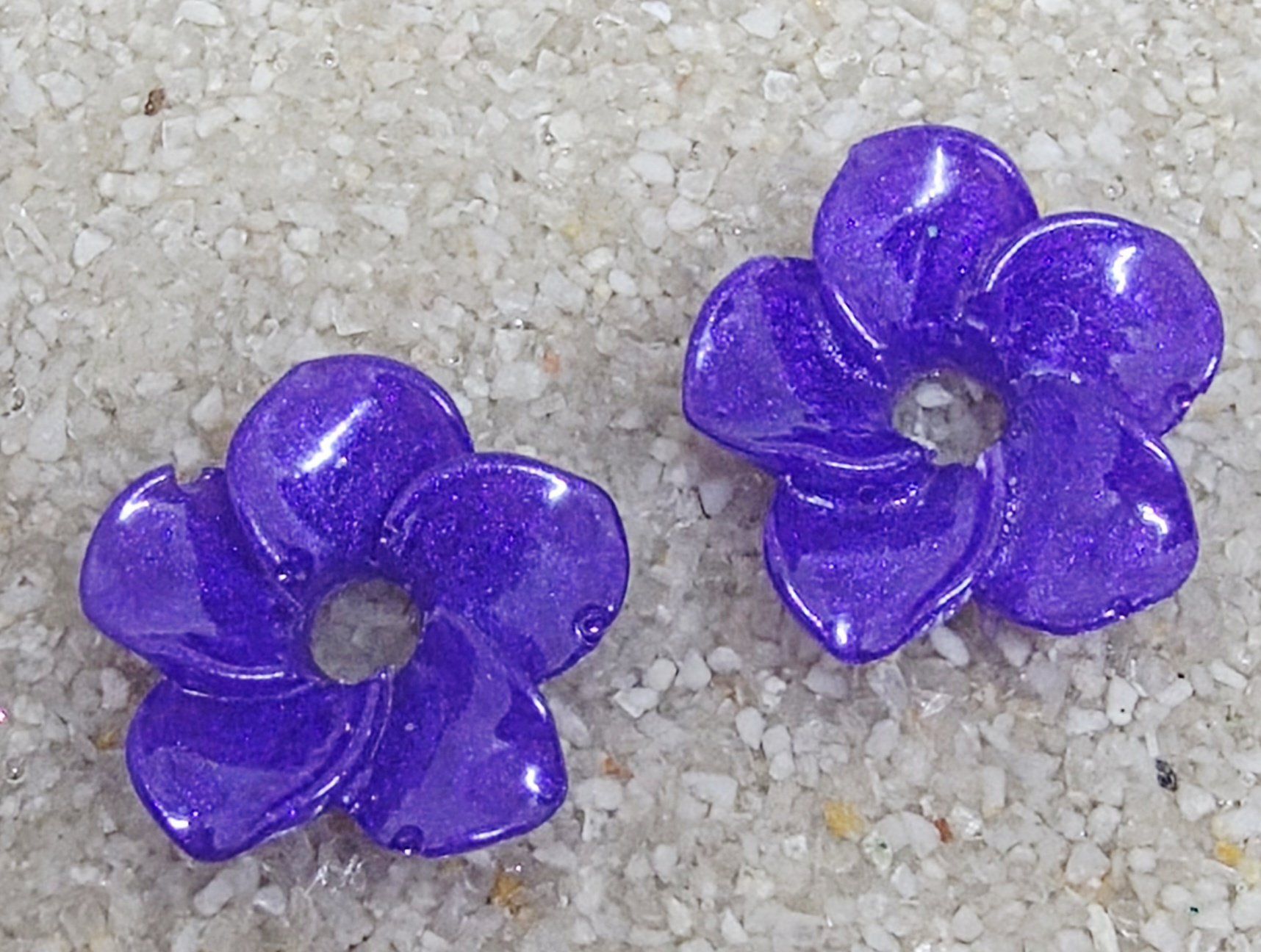 Lot de 2 Pampilles, Elena, en forme de fleur de tiaré, en résine époxy violette (différentes nuances disponibles). compatibles avec tous les modèles de créoles.
