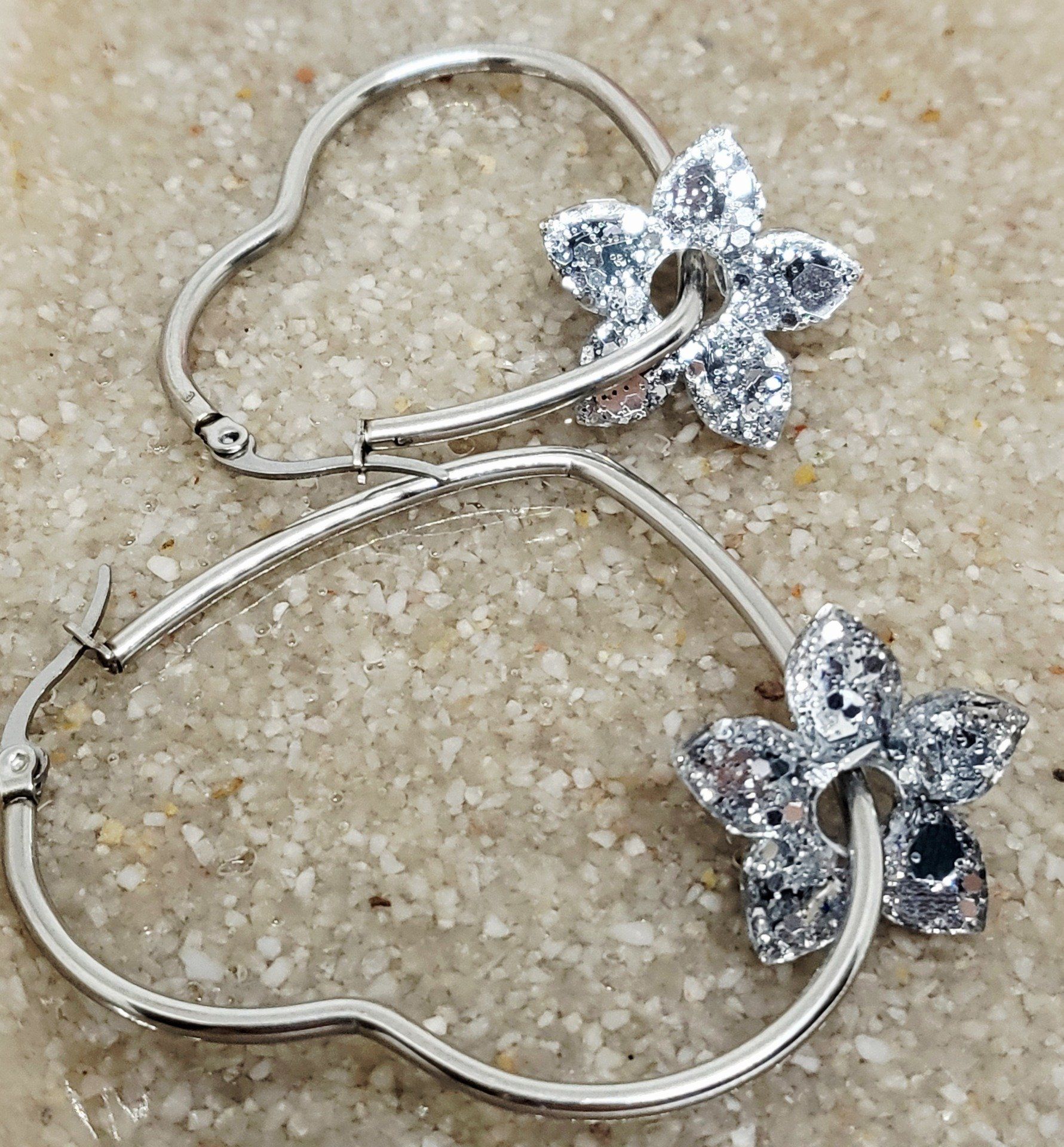 Lot de 2 créoles en acier inoxydable en forme de cœur. Modèle 3. Compatibles avec toutes les pampilles du site lesrésinespassions.com.