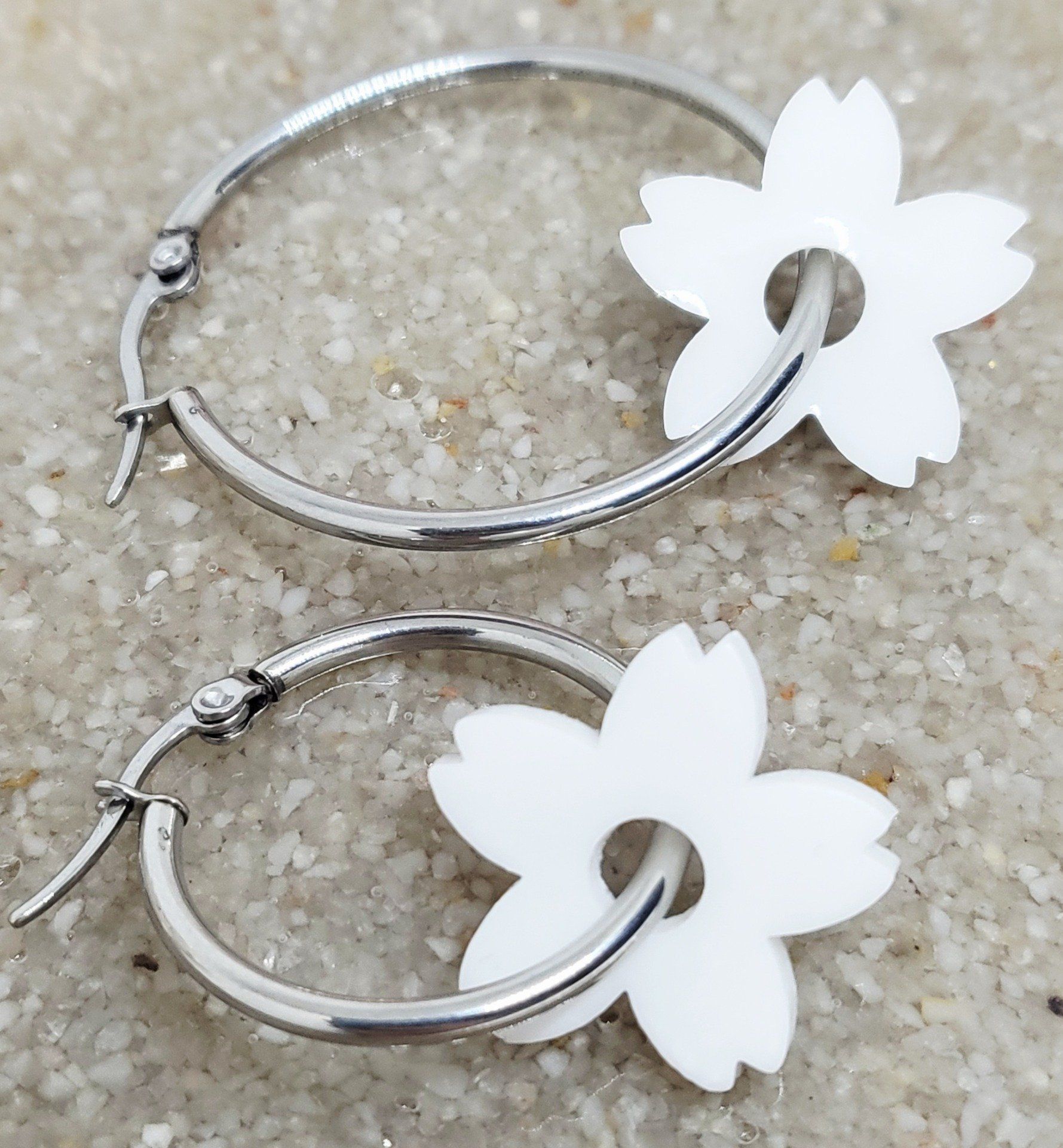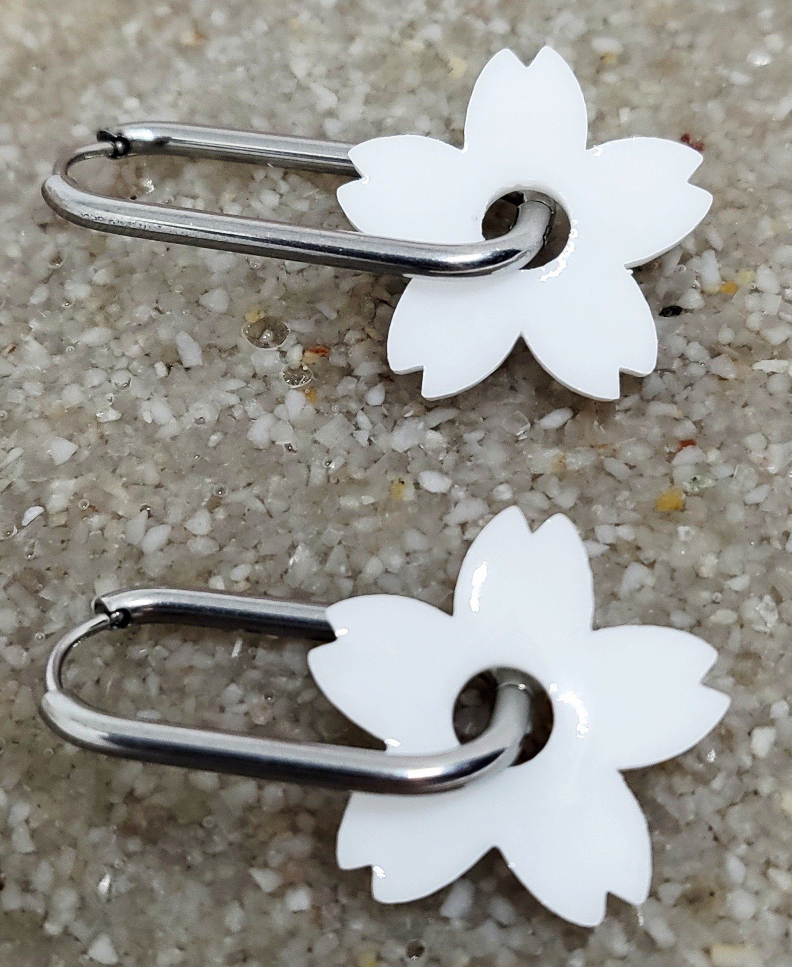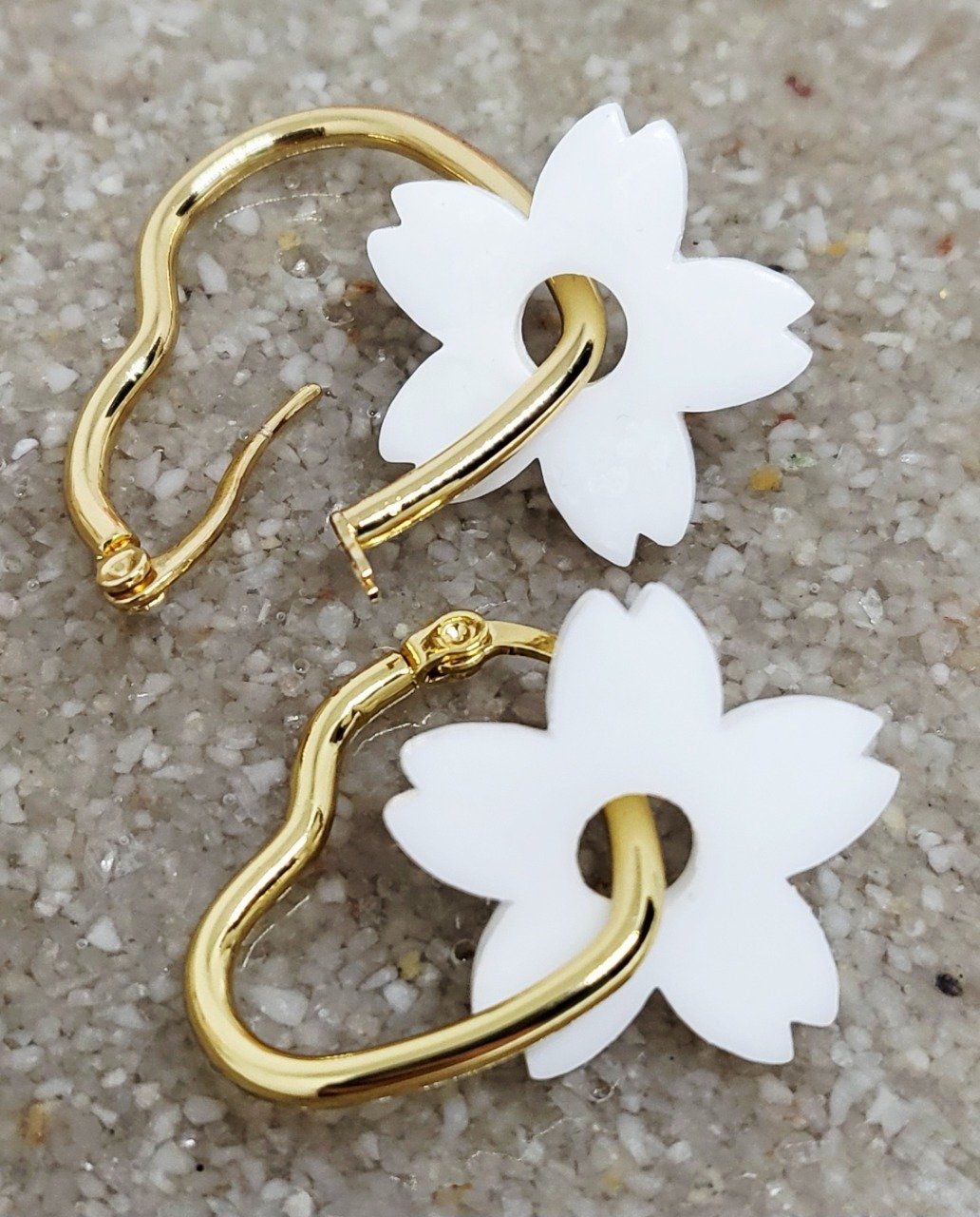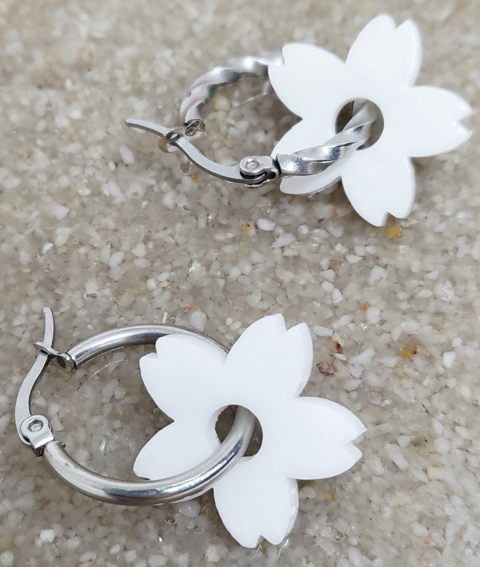 Lot de 2 Pampilles, fleur de tiaré, en résine époxy de couleur blanche opaque.