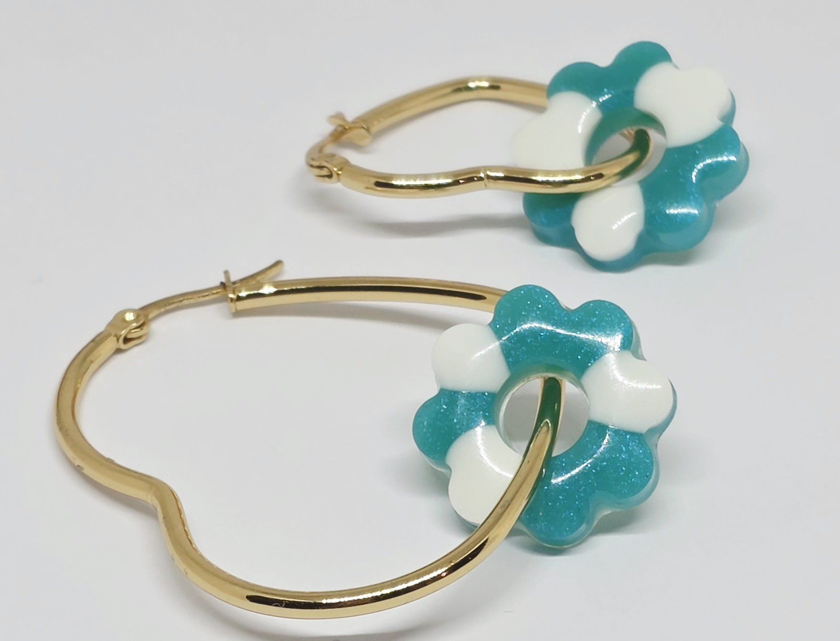 Lot de 2 créoles en acier inoxydable dorée ou argentée forme de cœur. Compatibles avec les pampilles du site lesrésinespassions.com sauf avec les modèles Aria et Athéna.