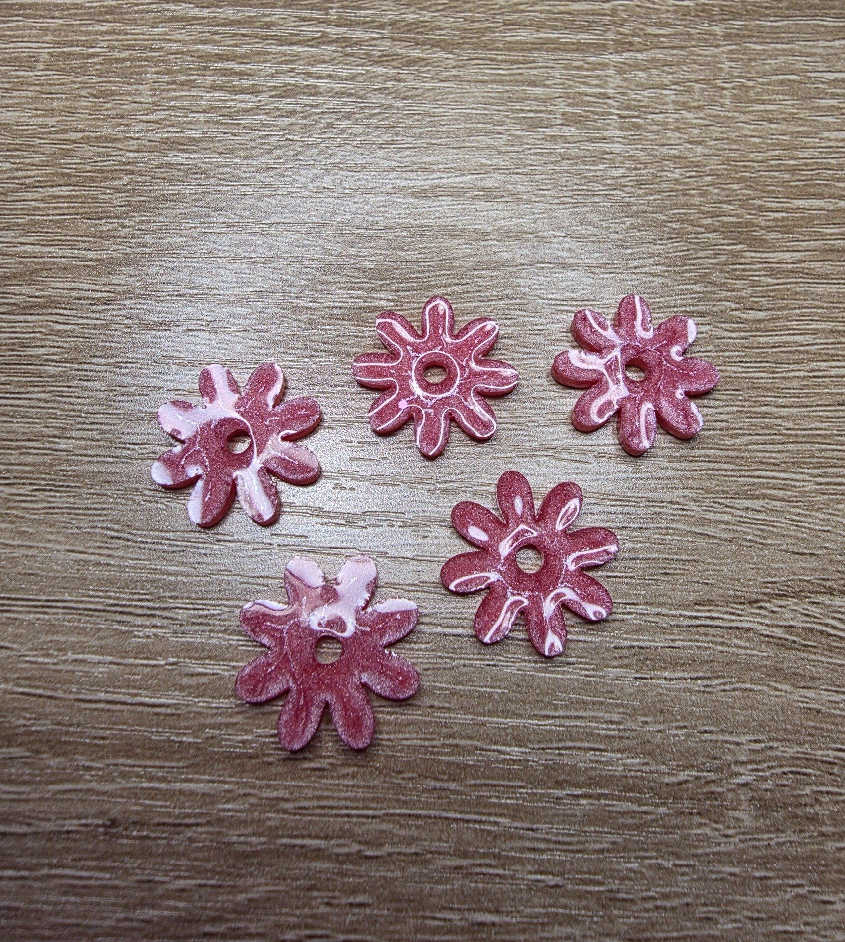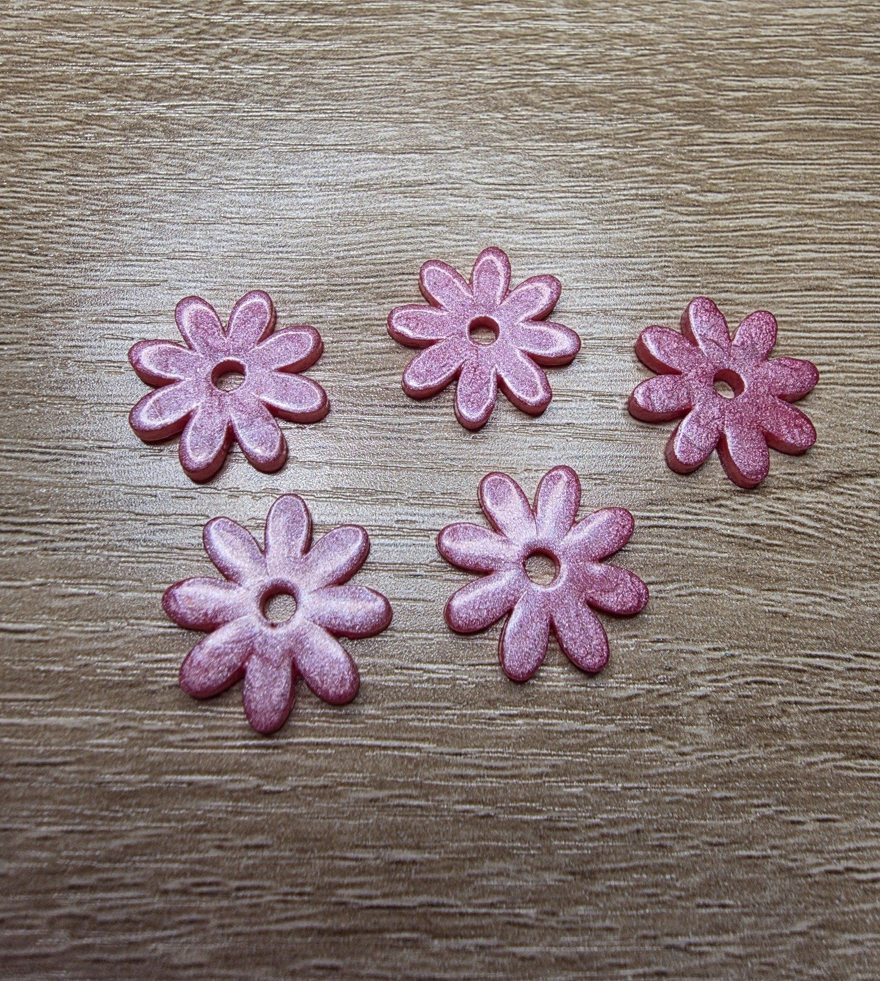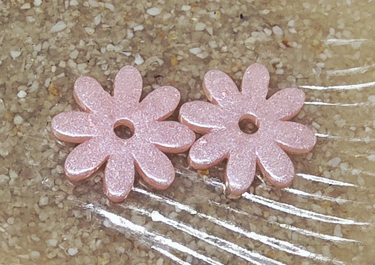 Lot de 2 pampilles en forme de fleur, de marguerite, réalisées en résine époxy rose, compatibles avec toutes les créoles vendues sur le site . Pampilles vendues sans les créoles.