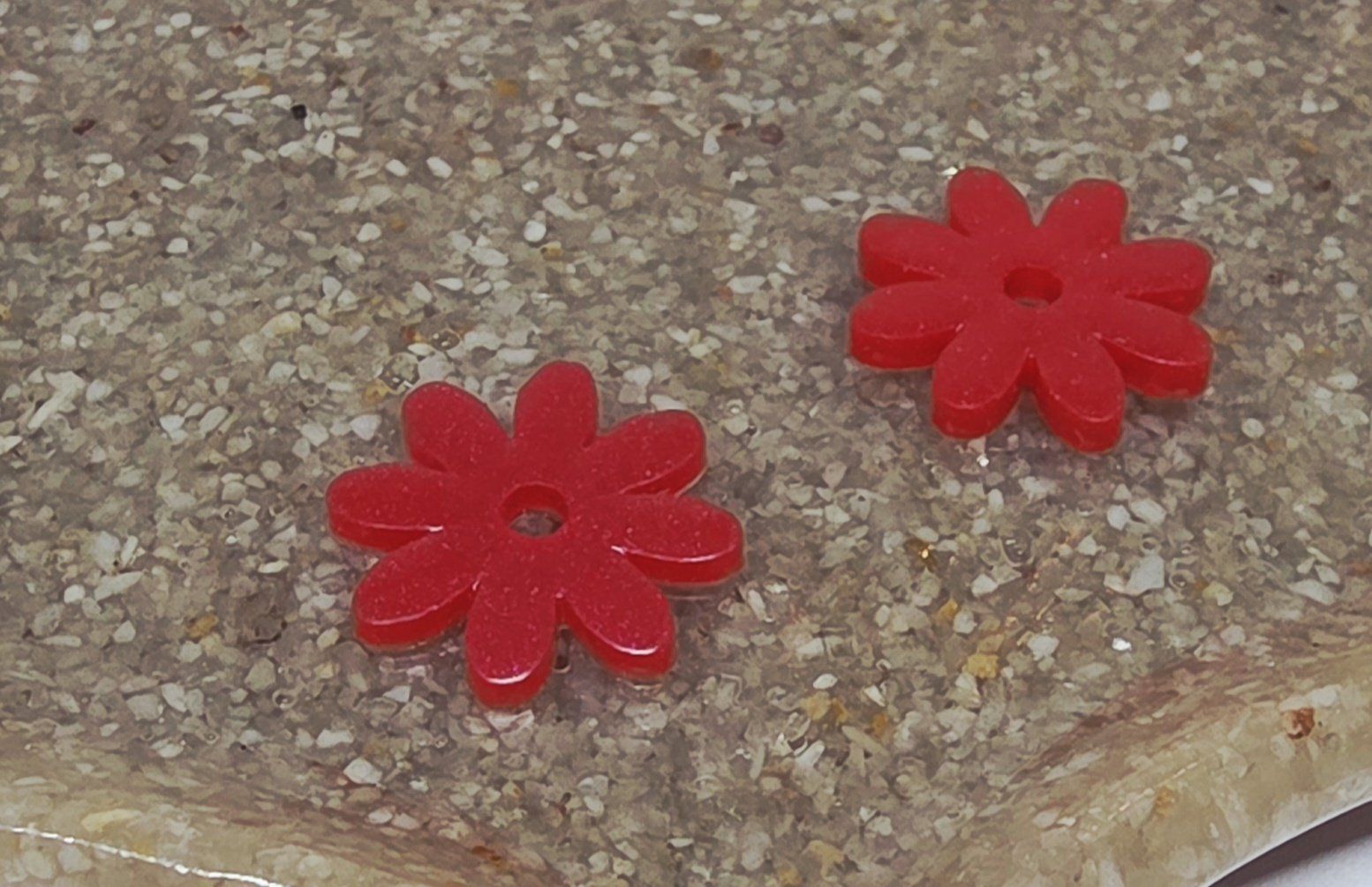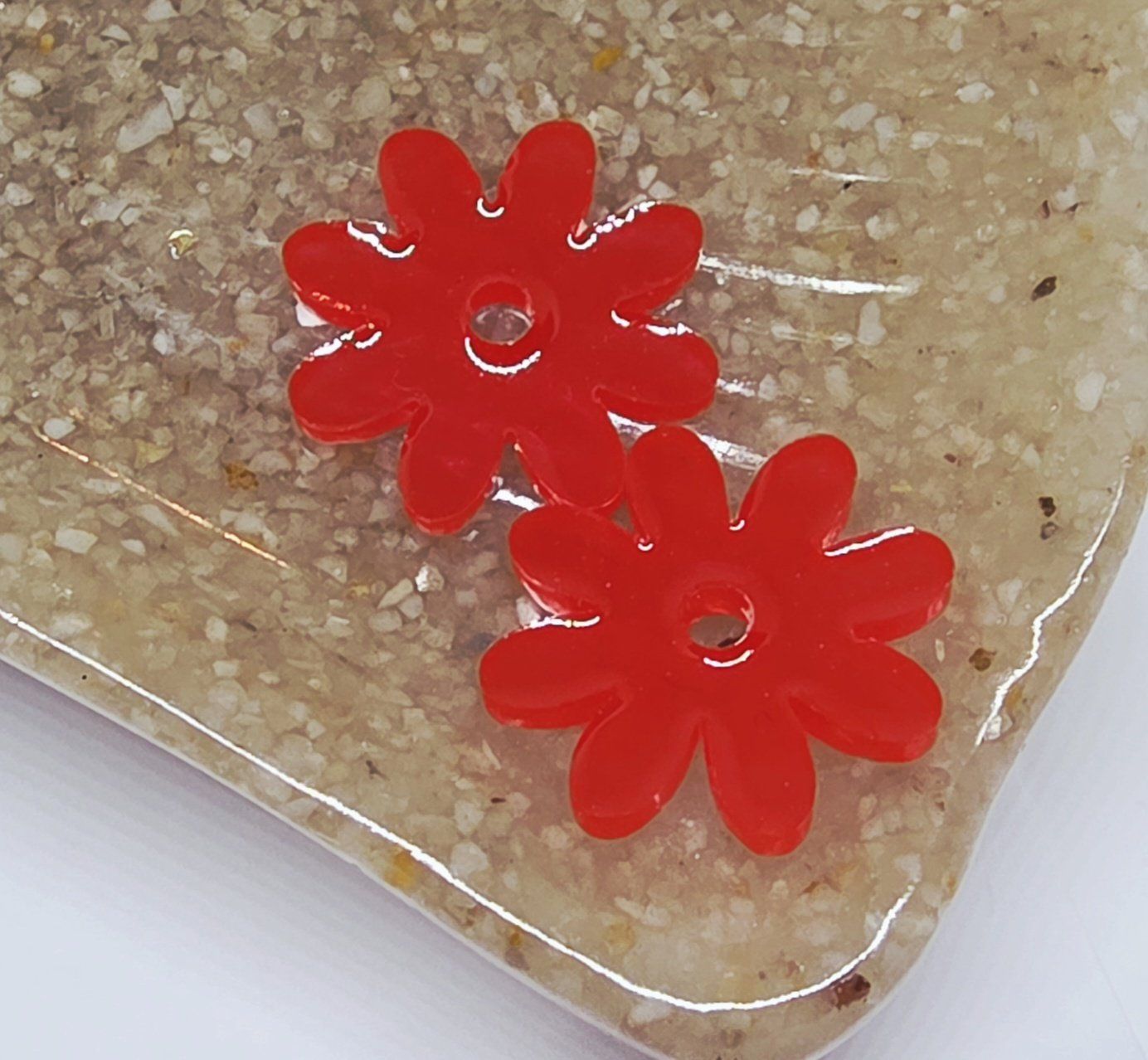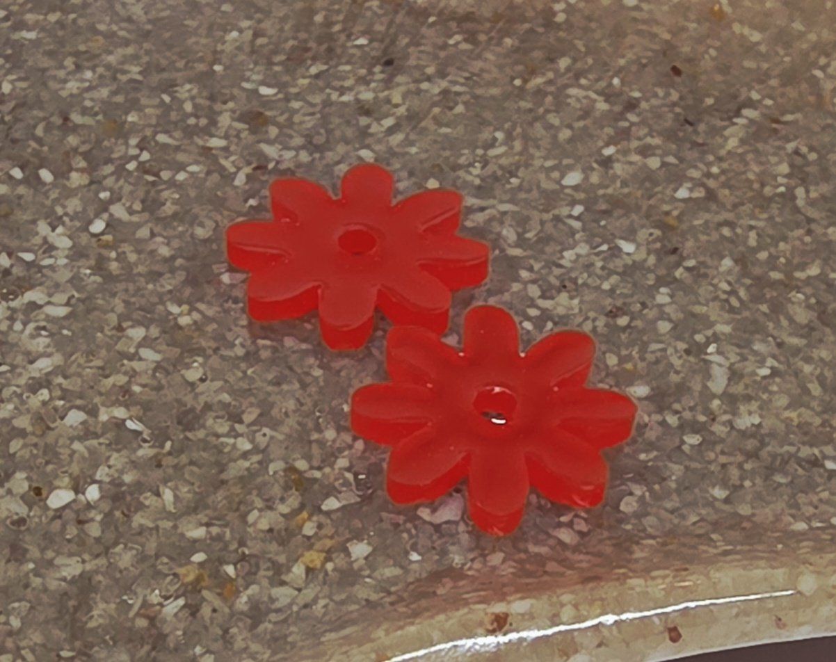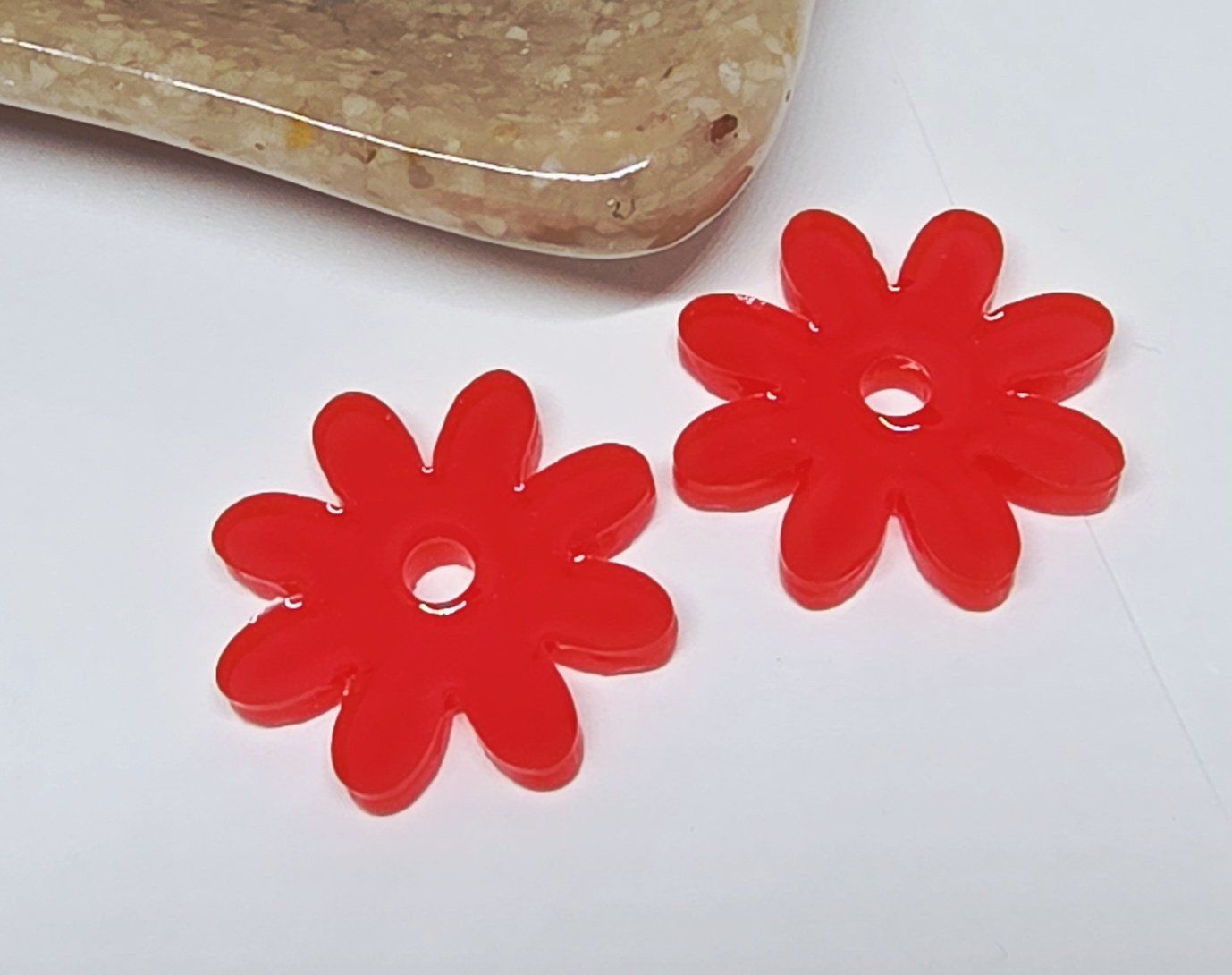 Lot de 2 pampilles en forme de fleur, de marguerite, réalisées en résine époxy rouge, compatibles avec toutes les créoles vendues sur le site . Pampilles vendues sans les créoles.
