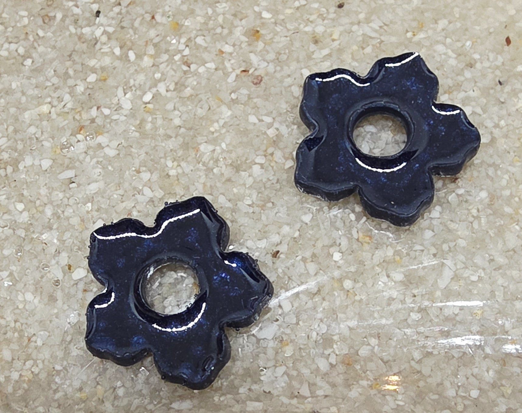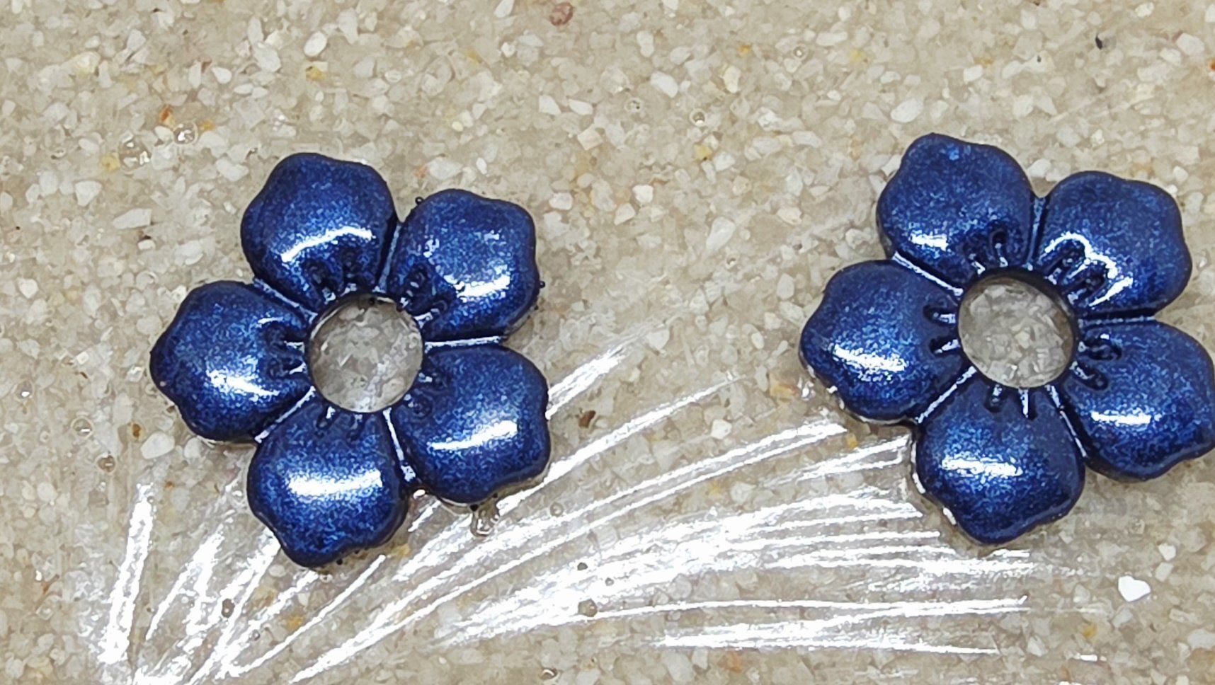 Lot de 2 Pampilles, Clara, en forme de fleur 5 pétales, en résine époxy opaque bleue foncée, compatibles avec les créoles dont la taille est supérieure à 20mm.