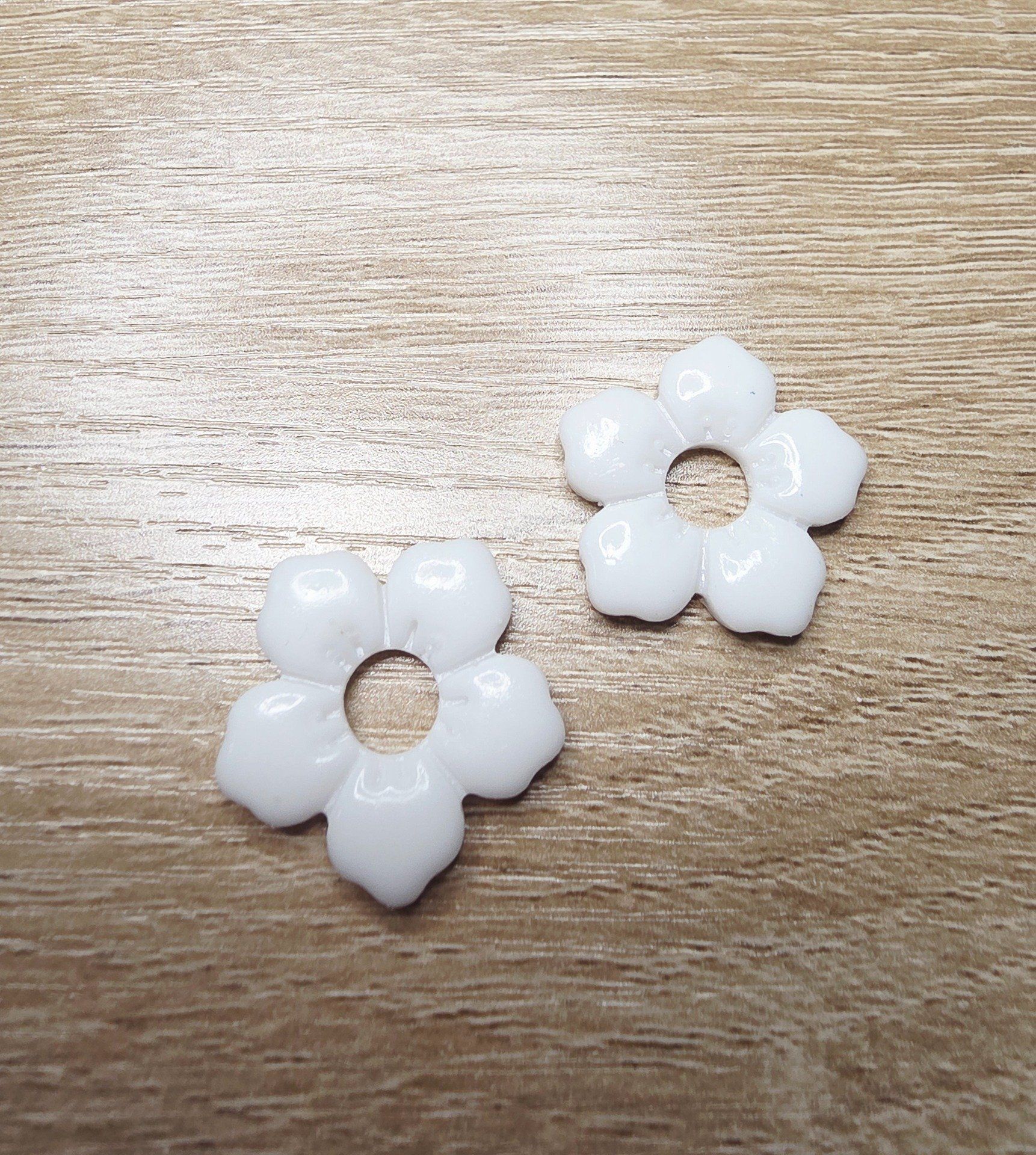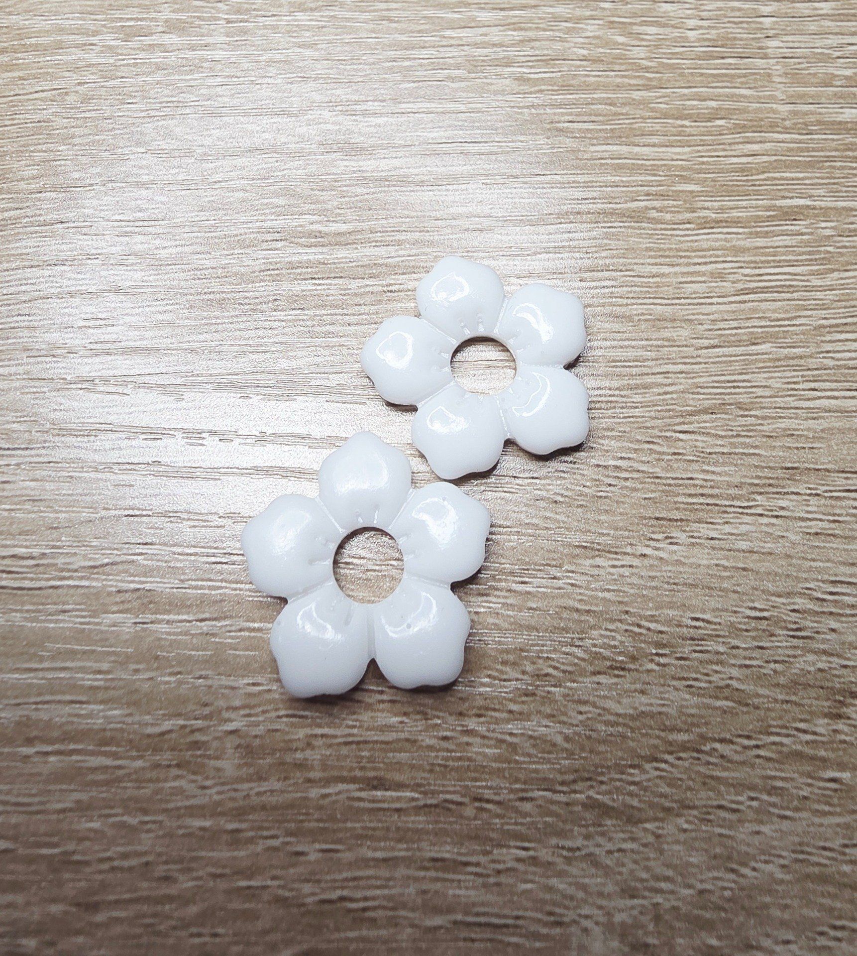 Lot de 2 Pampilles, Clara, en forme de fleur 5 pétales, en résine époxy opaque blanche, compatibles avec les créoles dont la taille est supérieure à 20mm.
