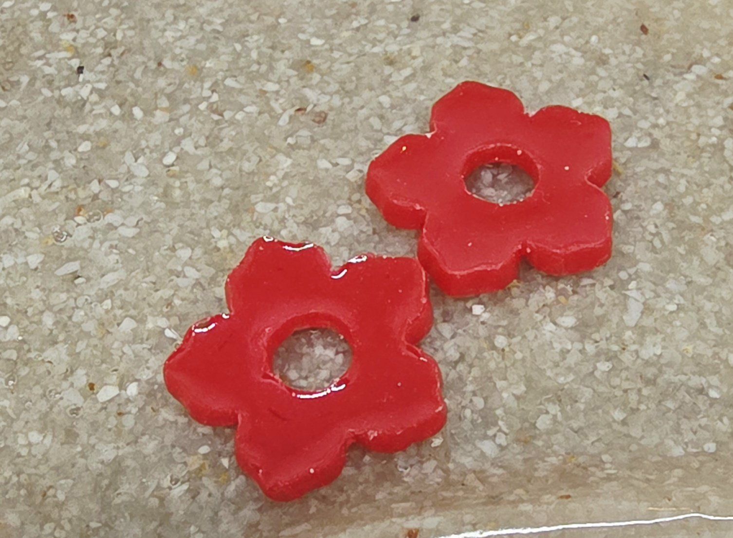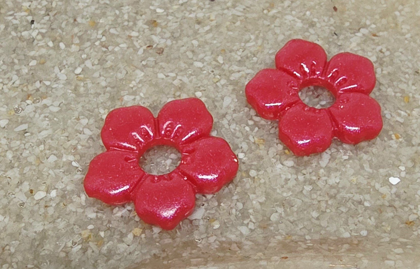 Lot de 2 Pampilles, Clara, en forme de fleur 5 pétales, en résine époxy opaque rouge, compatibles avec les créoles dont la taille est supérieure à 20mm.