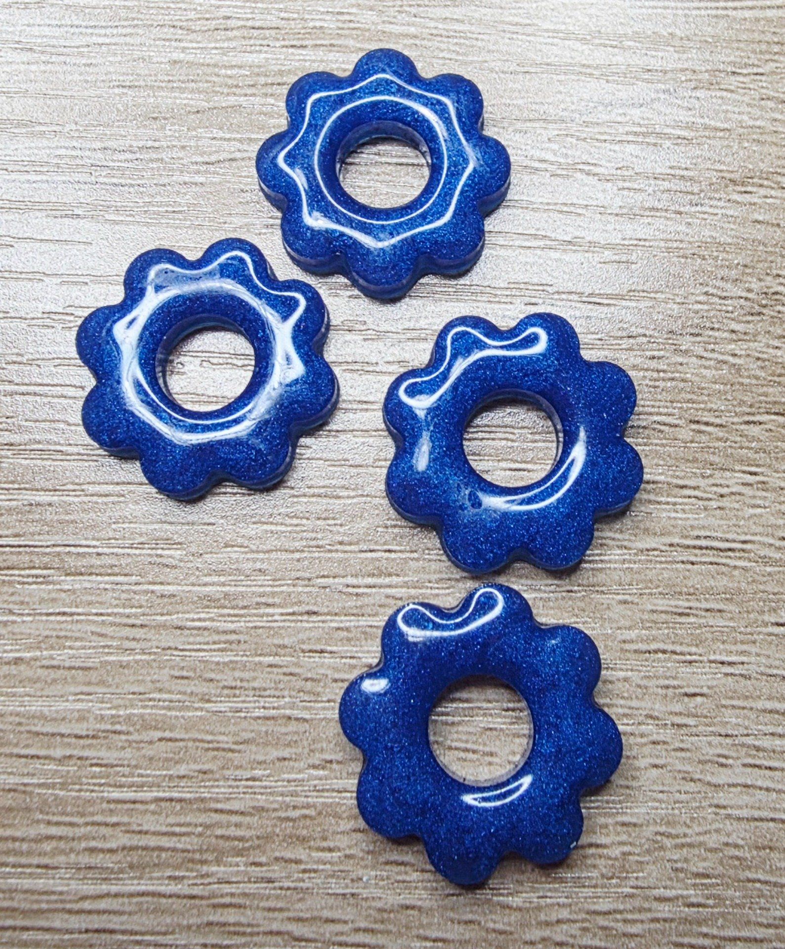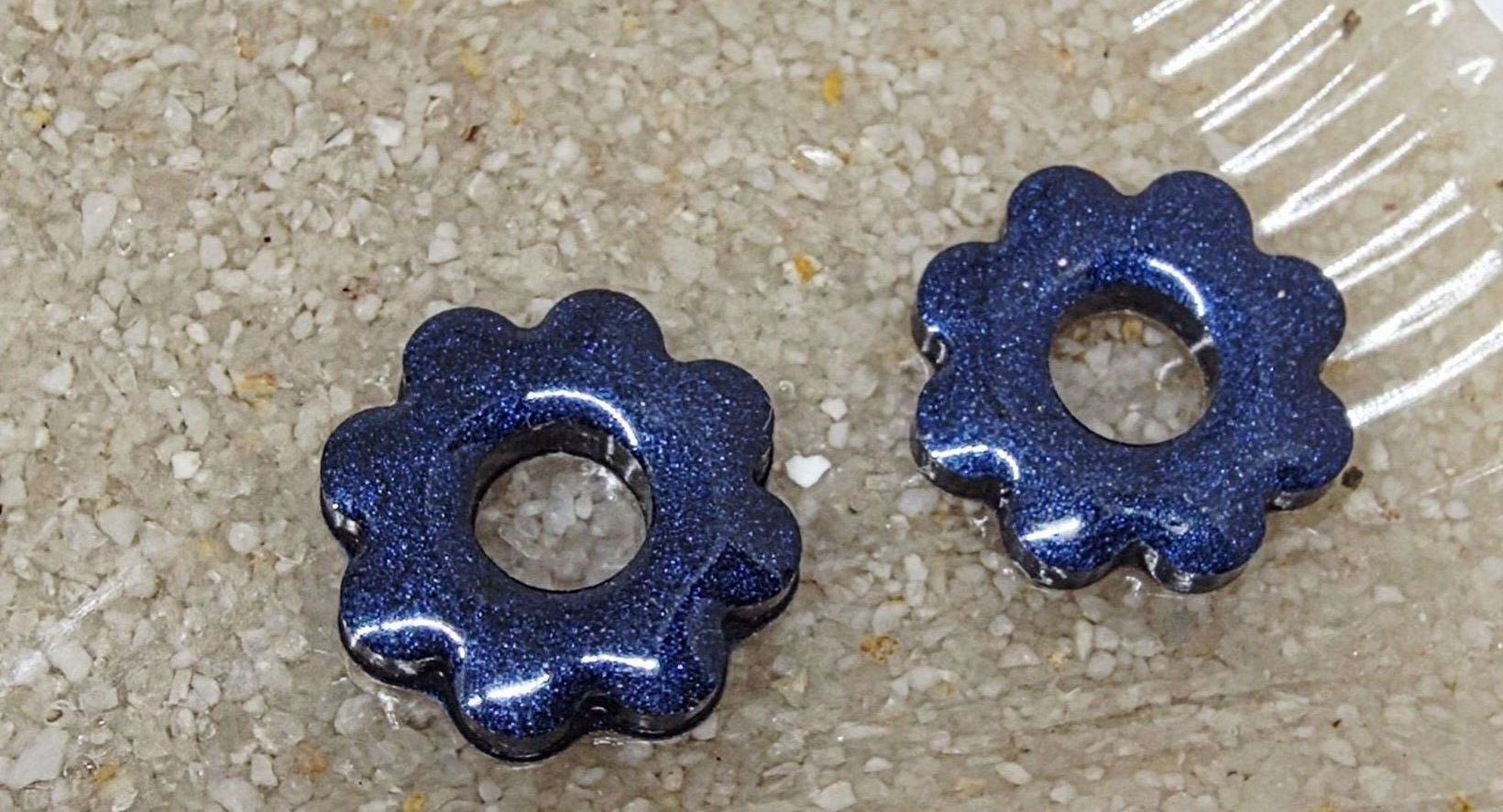 Lot de 2 Pampilles en forme de fleurs 8 pétales en résine époxy