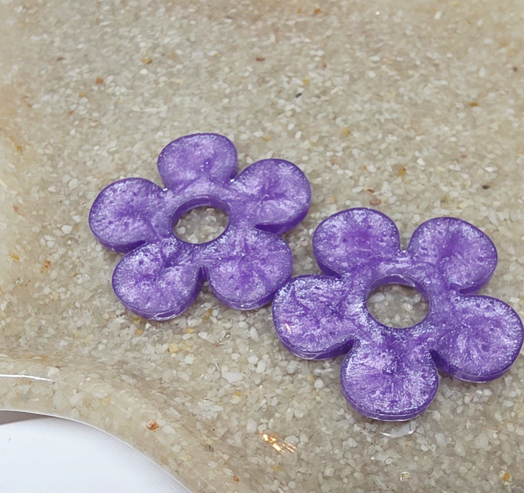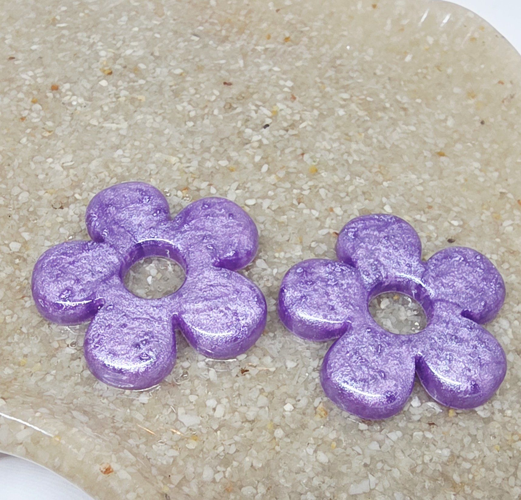 Lot de 2 Pampilles, modèles Aria, réalisées en résine époxy violette, compatibles avec les créoles dont la taille est supérieure à 20 mm.