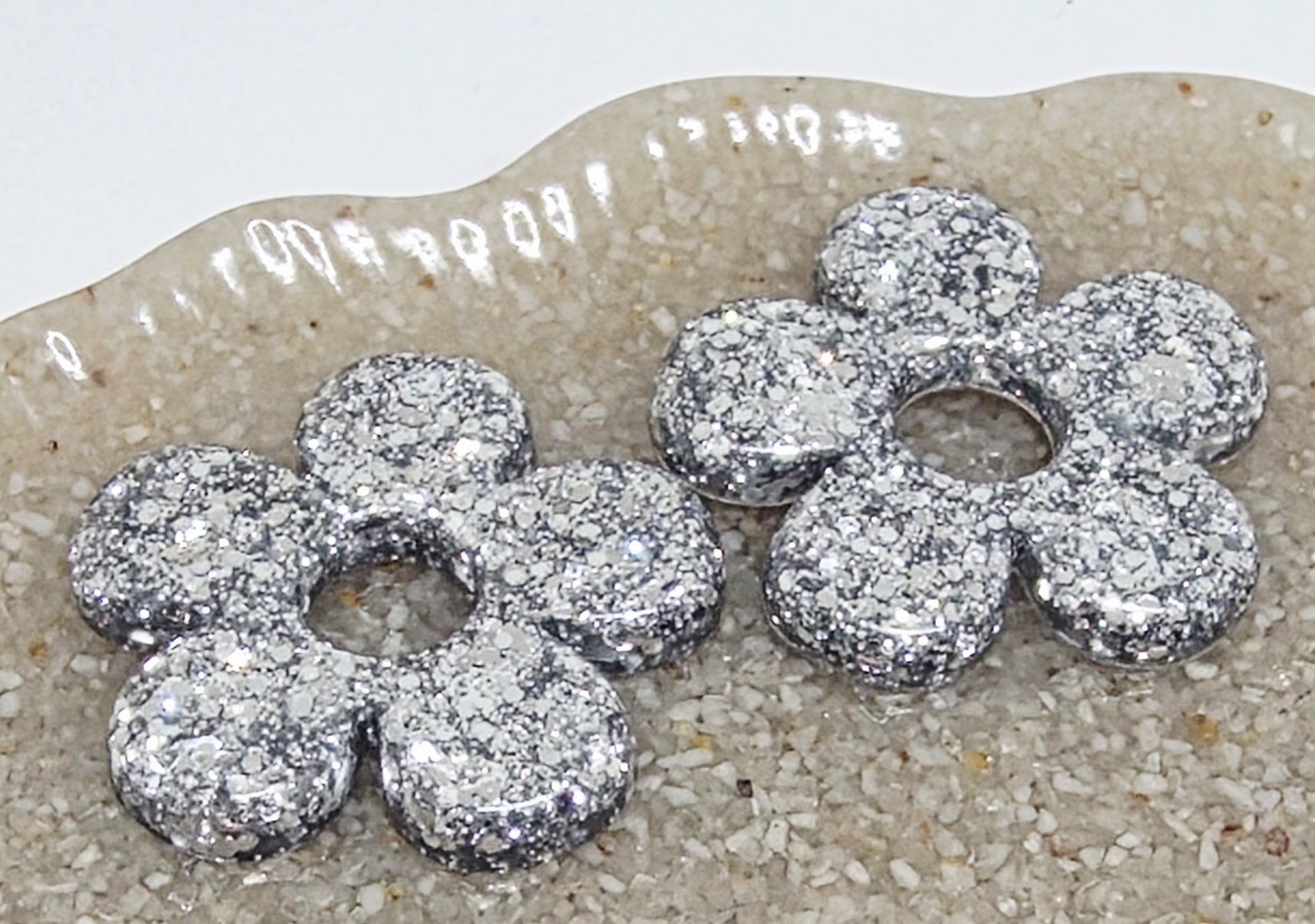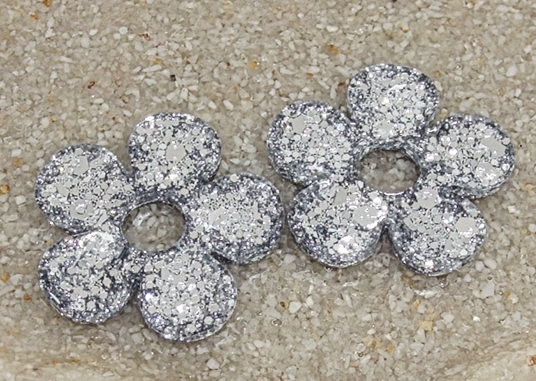 Lot de 2 Pampilles, modèle Aria, réalisées en résine époxy avec des incrustations de paillettes argentées, compatibles avec les créoles dont la taille est supérieure à 20 mm.