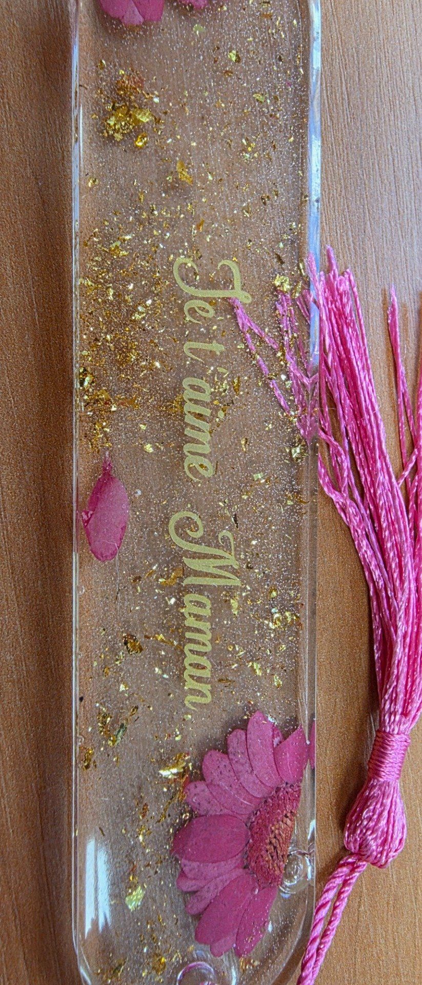 Ce marque-page est vendu avec une inscription dorée "Je t'aime maman ". Ce qui représente un cadeau idéal pour la fête des mères, pour Noël, pour un anniversaire ou encore juste pour le plaisir d'offrir.